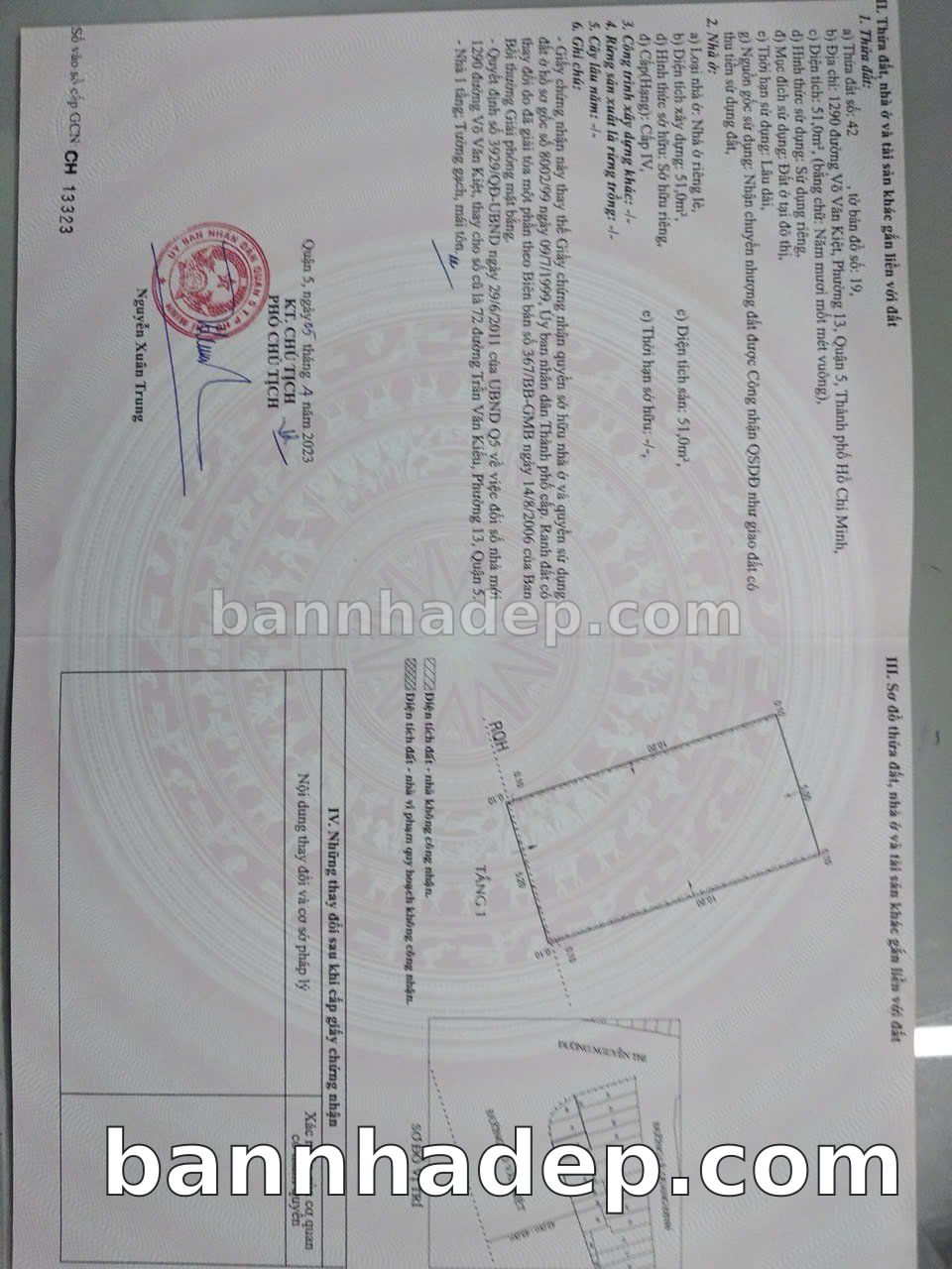 BÁN NHÀ MẶT TIỀN Số 1290 Võ Văn Kiệt Phường 13 Quận 5 TP. Hồ Chí Minh – GẦN TRUNG TÂM THƯƠNG MẠI LỚN – GIÁ TỐT 15,5 TỶ Cần bán nhà mặt tiền tại Số 1290 Võ Văn Kiệt Phường 13 Quận 5 TP. Hồ Chí Minh. Thông tin chi tiết: • Địa chỉ: Số 1290 Võ Văn Kiệt Phường 13 Quận 5 TP. Hồ Chí Minh • Diện tích: 5.2m x 10.0m, không gian thoáng đãng • Vị trí: Mặt tiền đường Võ Văn Kiệt, gần công viên, khu vực sầm uất, tiềm năng cao • Pháp lý: Sổ hồng riêng, sẵn sàng sang tên • Giá bán: 15,5 Tỷ (giá tốt, có thể thương lượng) Ưu thế vượt trội: • Khu vực sầm uất, tiềm năng kinh doanh tốt • Phù hợp kinh doanh dài hạn, ổn định • Giao thông thuận tiện, kết nối các quận trung tâm • Khu vực sầm uất, lưu lượng khách hàng lớn