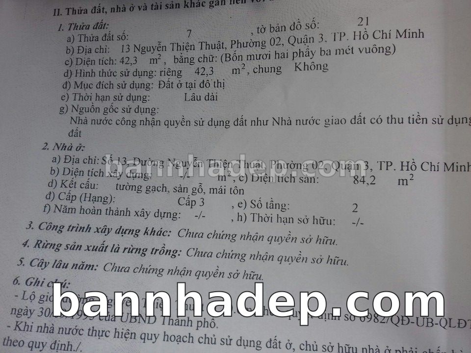 Bán nhà 13 Nguyễn Thiện Thuật phường 02 quận 3