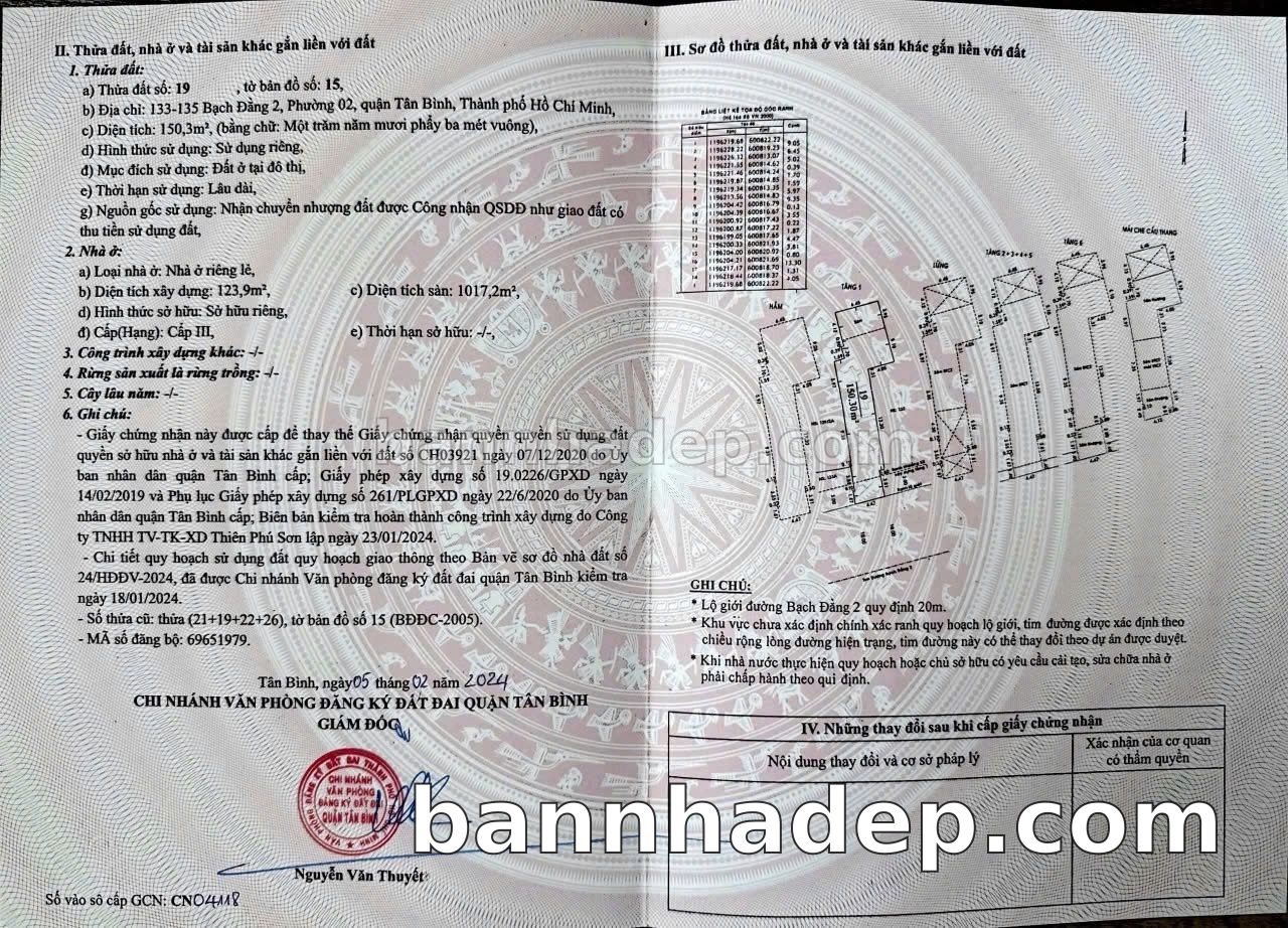 Địa chỉ: 133-135Thửa: 19Tờ: 15 Bạch Đằng 2 phường 2 quận Tân Bình