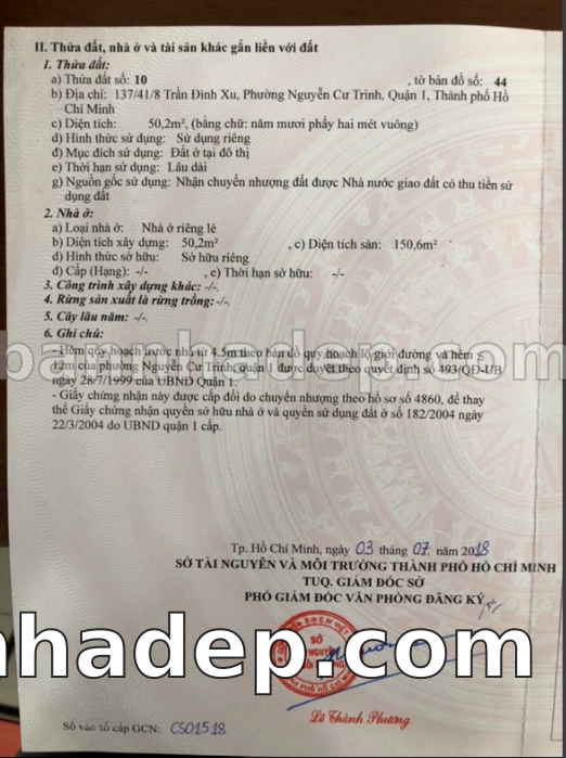 BÁN NHÀ Đường hẻm Số 137/41/8 Trần Đình Xu phường Nguyễn Cư Trinh quận 1 TP. Hồ Chí Minh – GẦN CÔNG VIÊN GIẢI TRÍ – GIÁ TỐT Cần bán gấp nhà Đường hẻm tại Số 137/41/8 Trần Đình Xu phường Nguyễn Cư Trinh quận 1 TP. Hồ Chí Minh – tiềm năng kinh doanh cao. Thông tin chi tiết: • Địa chỉ: Số 137/41/8 Trần Đình Xu phường Nguyễn Cư Trinh quận 1 TP. Hồ Chí Minh • Diện tích: như trong sổ, không gian lý tưởng • Vị trí: Đường hẻm đường Trần Đình Xu, gần trung tâm thương mại lớn, khu vực sầm uất, tiềm năng kinh doanh cao • Pháp lý: Sổ hồng riêng, không tranh chấp, sẵn sàng giao dịch • Giá bán: Thoả Thuận (còn thương lượng với khách thiện chí) Lợi thế đặc biệt: • Vị trí trung tâm Quận 1 • Giao thông thuận tiện, kết nối các quận trung tâm • Phù hợp kinh doanh dài hạn, ổn định • Khu vực sầm uất, tiềm năng kinh doanh tốt