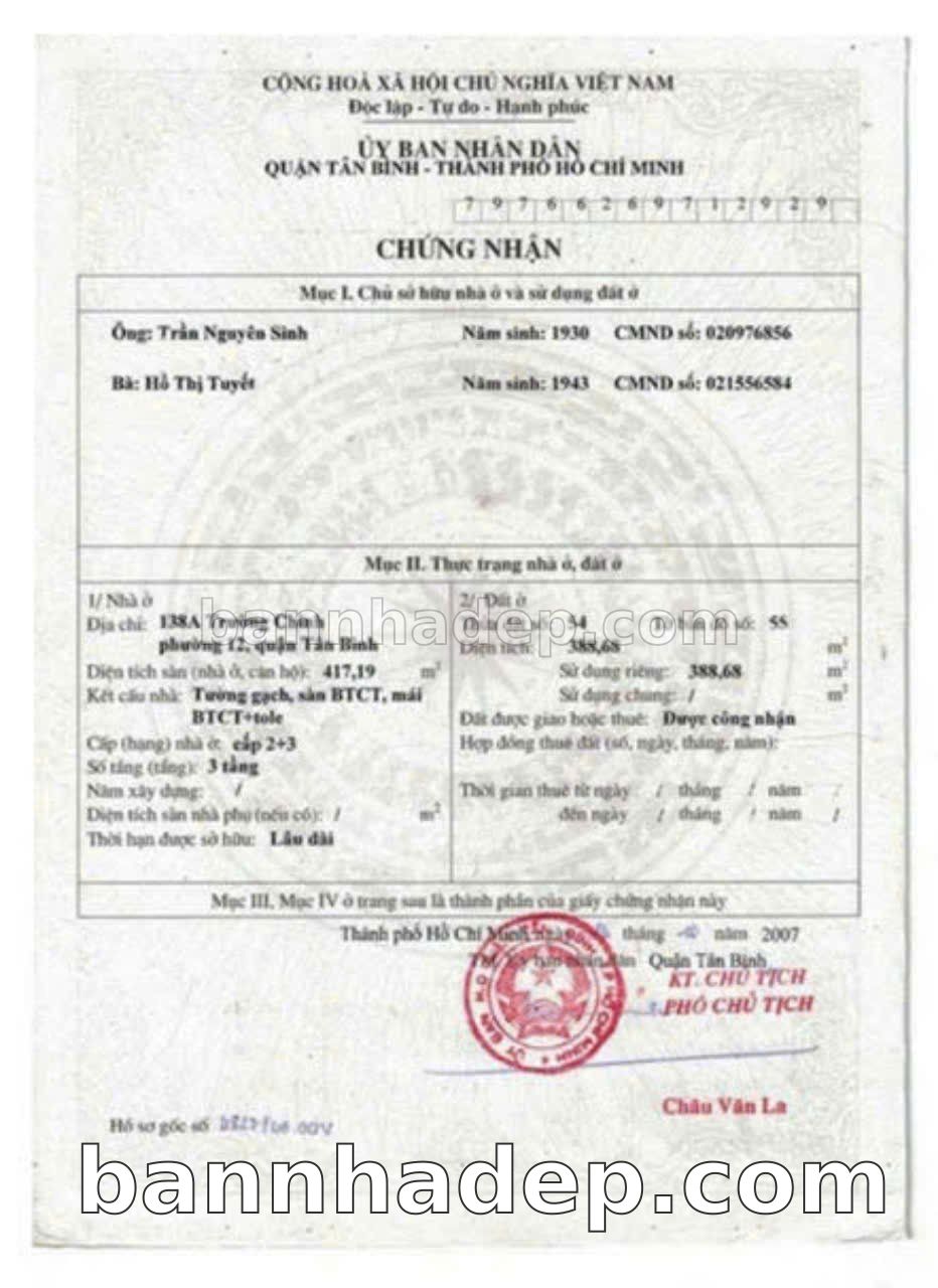 BÁN NHÀ MẶT TIỀN Số 138A Trường Chinh Phường 12 Quận Tân Bình TP. Hồ Chí Minh – GẦN CHỢ – GIÁ CỰC TỐT 129 TỶ Bán nhà mặt tiền tại Số 138A Trường Chinh Phường 12 Quận Tân Bình TP. Hồ Chí Minh – vị trí đắc địa. Thông tin chi tiết: • Địa chỉ: Số 138A Trường Chinh Phường 12 Quận Tân Bình TP. Hồ Chí Minh • Diện tích: 11.1m x 30.0m, không gian rộng rãi • Vị trí: Mặt tiền đường Trường Chinh sầm uất, gần siêu thị lớn, khu vực dân cư đông đúc, lưu lượng xe cộ lớn – cực kỳ thích hợp kinh doanh mọi ngành nghề: cửa hàng tạp hóa, tiệm nail, salon tóc, văn phòng công ty • Pháp lý: Sổ hồng riêng, pháp lý minh bạch • Giá bán: 129 Tỷ (giá tốt, có thể thương lượng) Điểm mạnh: • Khu vực phát triển, tiềm năng tăng trưởng cao • Vị trí đắc địa, tiềm năng sinh lời cao • Mặt tiền rộng, giá trị khai thác thương mại cao • Khu vực sầm uất, tiềm năng kinh doanh tốt