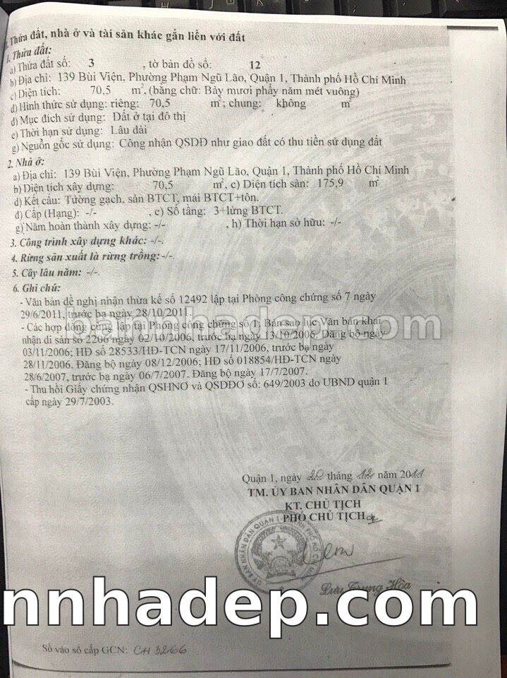 Bán nhà 139 Bùi Viện phường Phạm Ngũ Lão quận 1