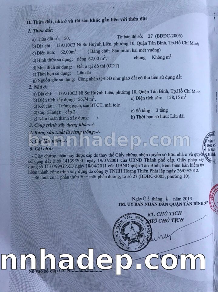 BÁN NHÀ Mặt tiền Số 13A/10C3 Ni Sư Huỳnh Liên phường 01 quận Tân Bình TP. Hồ Chí Minh – GẦN CÔNG VIÊN GIẢI TRÍ – GIÁ TỐT Cần bán gấp nhà Mặt tiền tại Số 13A/10C3 Ni Sư Huỳnh Liên phường 01 quận Tân Bình TP. Hồ Chí Minh – tiềm năng kinh doanh cao. Thông tin chi tiết: • Địa chỉ: Số 13A/10C3 Ni Sư Huỳnh Liên phường 01 quận Tân Bình TP. Hồ Chí Minh • Diện tích: như trong sổ, không gian lý tưởng • Vị trí: Mặt tiền đường Ni Sư Huỳnh Liên, gần trung tâm thương mại lớn, khu vực sầm uất, tiềm năng kinh doanh cao • Pháp lý: Sổ hồng riêng, không tranh chấp, sẵn sàng giao dịch • Giá bán: Thoả Thuận (còn thương lượng với khách thiện chí) Lợi thế đặc biệt: • Vị trí trung tâm Quận Tân Bình • Giao thông thuận tiện, kết nối các quận trung tâm • Phù hợp kinh doanh dài hạn, ổn định • Khu vực sầm uất, tiềm năng kinh doanh tốt