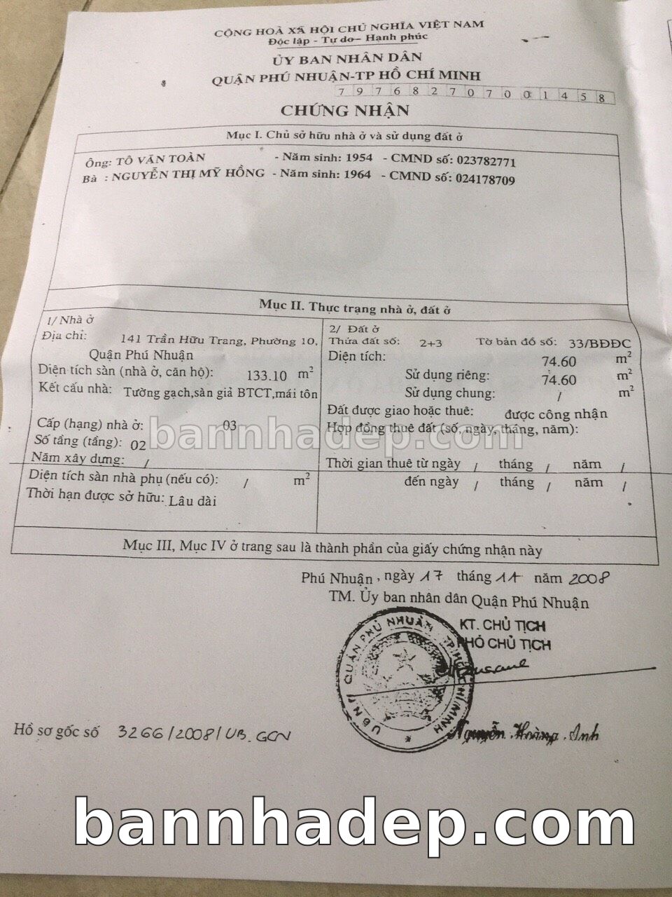 Bán nhà 150 tờ bản đồ số 1 phường 01 quận Phú Nhuận