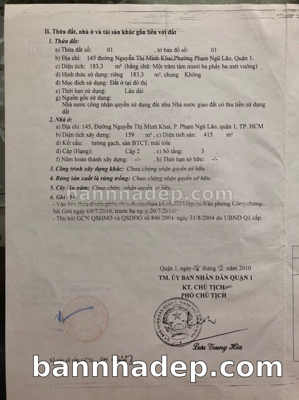 BÁN NHÀ Mặt tiền Số 145 Nguyễn Thị Minh Khai phường Phạm Ngũ Lão quận 1 TP. Hồ Chí Minh – GẦN CÔNG VIÊN GIẢI TRÍ – GIÁ TỐT Cần bán gấp nhà Mặt tiền tại Số 145 Nguyễn Thị Minh Khai phường Phạm Ngũ Lão quận 1 TP. Hồ Chí Minh – tiềm năng kinh doanh cao. Thông tin chi tiết: • Địa chỉ: Số 145 Nguyễn Thị Minh Khai phường Phạm Ngũ Lão quận 1 TP. Hồ Chí Minh • Diện tích: như trong sổ, không gian lý tưởng • Vị trí: Mặt tiền đường Nguyễn Thị Minh Khai, gần trung tâm thương mại lớn, khu vực sầm uất, tiềm năng kinh doanh cao • Pháp lý: Sổ hồng riêng, không tranh chấp, sẵn sàng giao dịch • Giá bán: Thoả Thuận (còn thương lượng với khách thiện chí) Lợi thế đặc biệt: • Vị trí trung tâm Quận 1 • Giao thông thuận tiện, kết nối các quận trung tâm • Phù hợp kinh doanh dài hạn, ổn định • Khu vực sầm uất, tiềm năng kinh doanh tốt