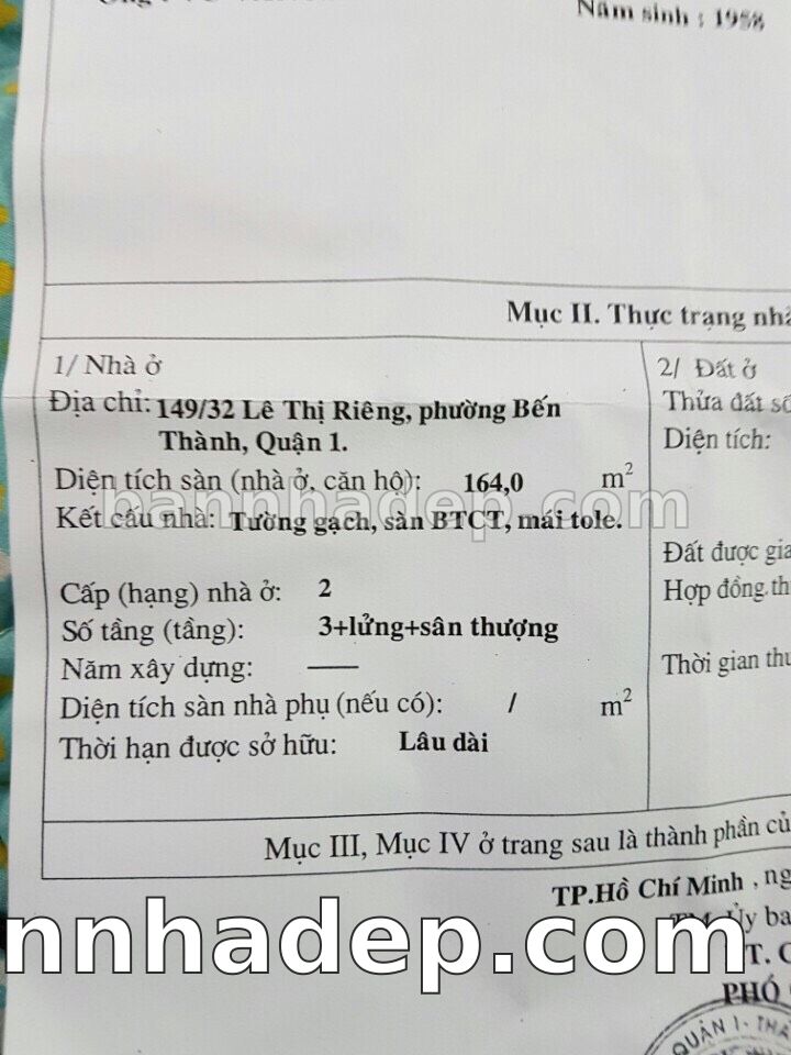Bán nhà 149/32 Lê Thị Riêng phường Bến Thành quận 1