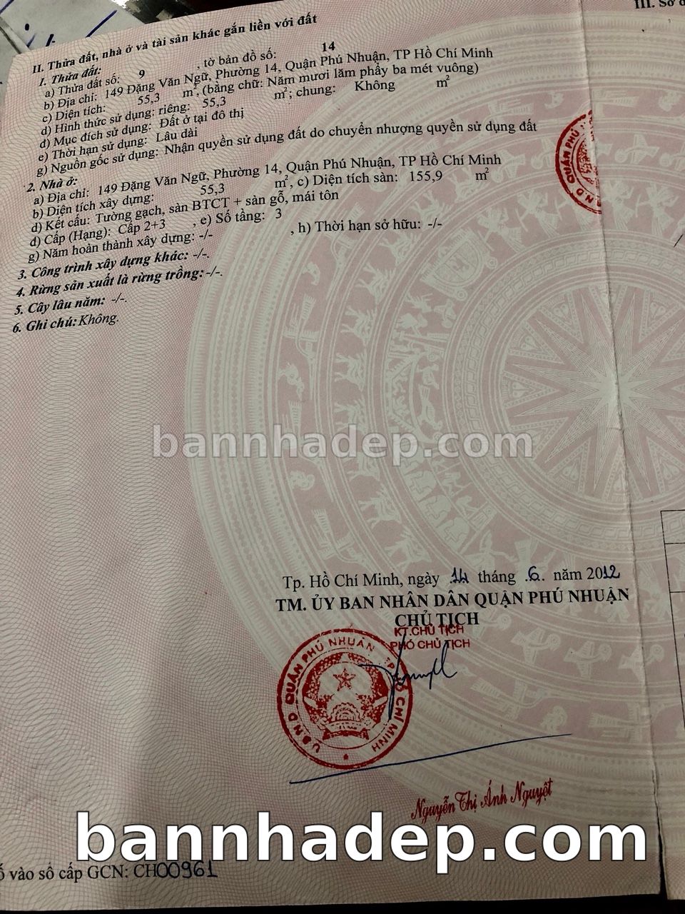BÁN NHÀ Mặt tiền Số 149 Đặng Văn Ngữ phường 01 quận Phú Nhuận TP. Hồ Chí Minh – GẦN CÔNG VIÊN GIẢI TRÍ – GIÁ TỐT Cần bán gấp nhà Mặt tiền tại Số 149 Đặng Văn Ngữ phường 01 quận Phú Nhuận TP. Hồ Chí Minh – tiềm năng kinh doanh cao. Thông tin chi tiết: • Địa chỉ: Số 149 Đặng Văn Ngữ phường 01 quận Phú Nhuận TP. Hồ Chí Minh • Diện tích: như trong sổ, không gian lý tưởng • Vị trí: Mặt tiền đường Đặng Văn Ngữ, gần trung tâm thương mại lớn, khu vực sầm uất, tiềm năng kinh doanh cao • Pháp lý: Sổ hồng riêng, không tranh chấp, sẵn sàng giao dịch • Giá bán: Thoả Thuận (còn thương lượng với khách thiện chí) Lợi thế đặc biệt: • Vị trí trung tâm Quận Phú Nhuận • Giao thông thuận tiện, kết nối các quận trung tâm • Phù hợp kinh doanh dài hạn, ổn định • Khu vực sầm uất, tiềm năng kinh doanh tốt