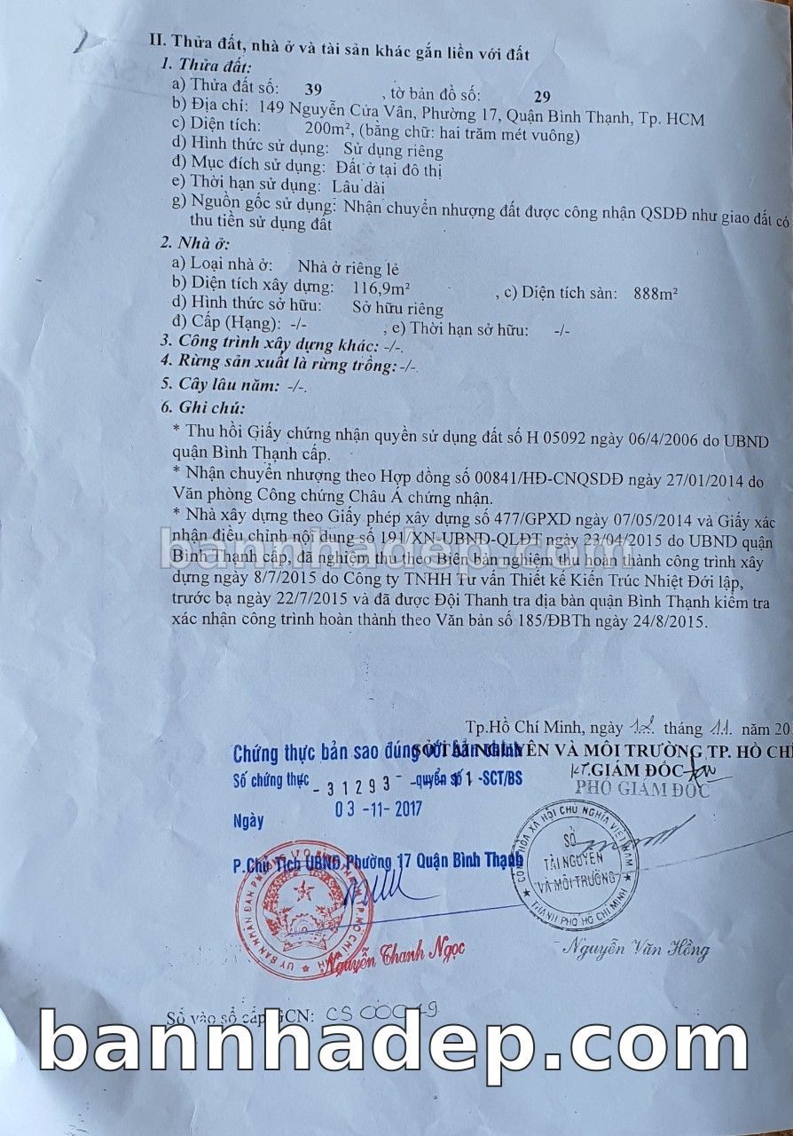 BÁN NHÀ Mặt tiền Số 149 Nguyễn Cửu Vân phường 01 quận Bình Thạnh TP. Hồ Chí Minh – GẦN CÔNG VIÊN GIẢI TRÍ – GIÁ TỐT Cần bán gấp nhà Mặt tiền tại Số 149 Nguyễn Cửu Vân phường 01 quận Bình Thạnh TP. Hồ Chí Minh – tiềm năng kinh doanh cao. Thông tin chi tiết: • Địa chỉ: Số 149 Nguyễn Cửu Vân phường 01 quận Bình Thạnh TP. Hồ Chí Minh • Diện tích: như trong sổ, không gian lý tưởng • Vị trí: Mặt tiền đường Nguyễn Cửu Vân, gần trung tâm thương mại lớn, khu vực sầm uất, tiềm năng kinh doanh cao • Pháp lý: Sổ hồng riêng, không tranh chấp, sẵn sàng giao dịch • Giá bán: Thoả Thuận (còn thương lượng với khách thiện chí) Lợi thế đặc biệt: • Vị trí trung tâm Quận Bình Thạnh • Giao thông thuận tiện, kết nối các quận trung tâm • Phù hợp kinh doanh dài hạn, ổn định • Khu vực sầm uất, tiềm năng kinh doanh tốt