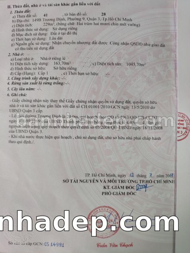 BÁN NHÀ Mặt tiền Số 149B Trương Định phường 09 quận 3 TP. Hồ Chí Minh – GẦN CÔNG VIÊN GIẢI TRÍ – GIÁ TỐT Cần bán gấp nhà Mặt tiền tại Số 149B Trương Định phường 09 quận 3 TP. Hồ Chí Minh – tiềm năng kinh doanh cao. Thông tin chi tiết: • Địa chỉ: Số 149B Trương Định phường 09 quận 3 TP. Hồ Chí Minh • Diện tích: như trong sổ, không gian lý tưởng • Vị trí: Mặt tiền đường Trương Định, gần trung tâm thương mại lớn, khu vực sầm uất, tiềm năng kinh doanh cao • Pháp lý: Sổ hồng riêng, không tranh chấp, sẵn sàng giao dịch • Giá bán: Thoả Thuận (còn thương lượng với khách thiện chí) Lợi thế đặc biệt: • Vị trí trung tâm Quận 3 • Giao thông thuận tiện, kết nối các quận trung tâm • Phù hợp kinh doanh dài hạn, ổn định • Khu vực sầm uất, tiềm năng kinh doanh tốt
