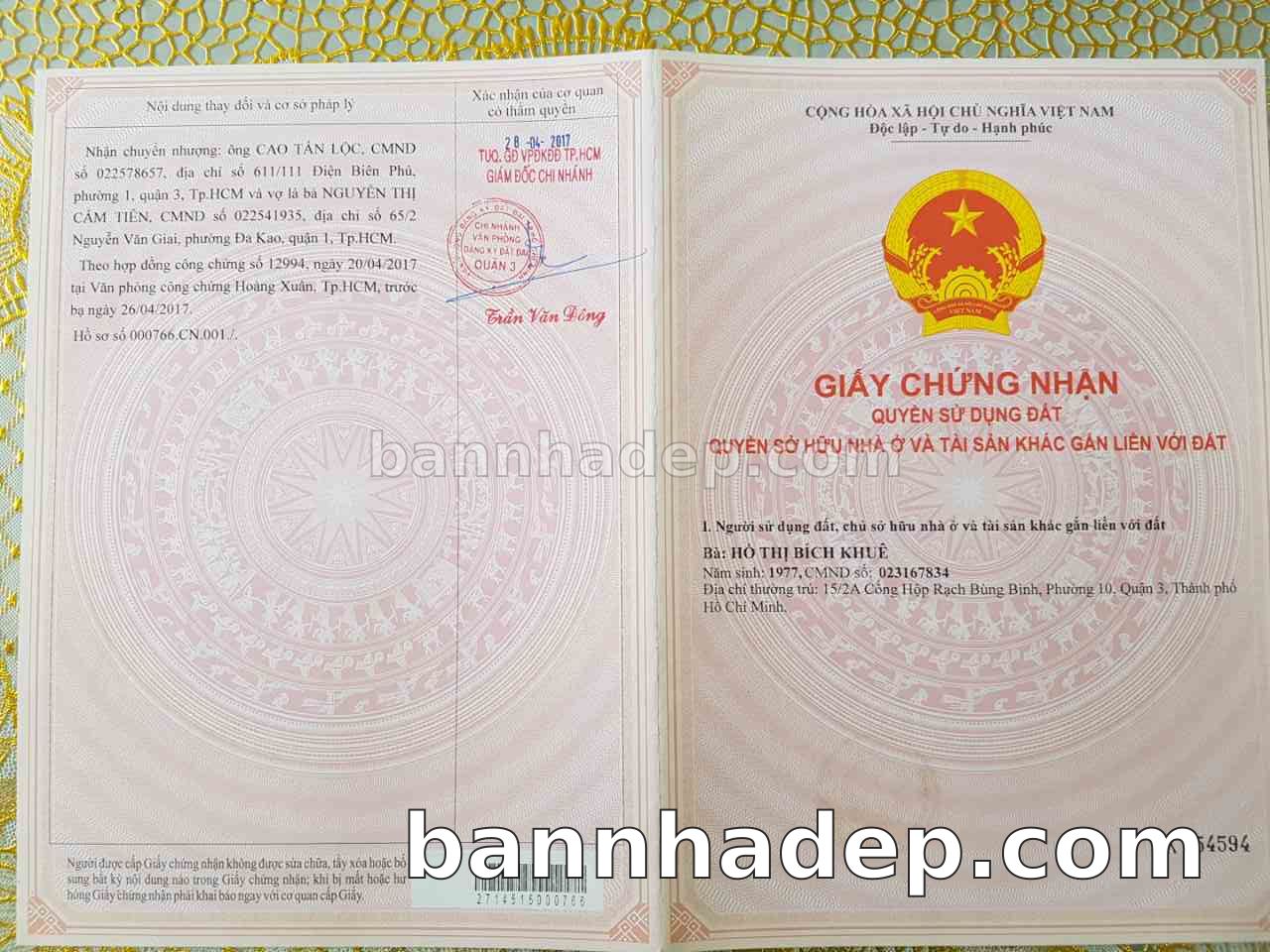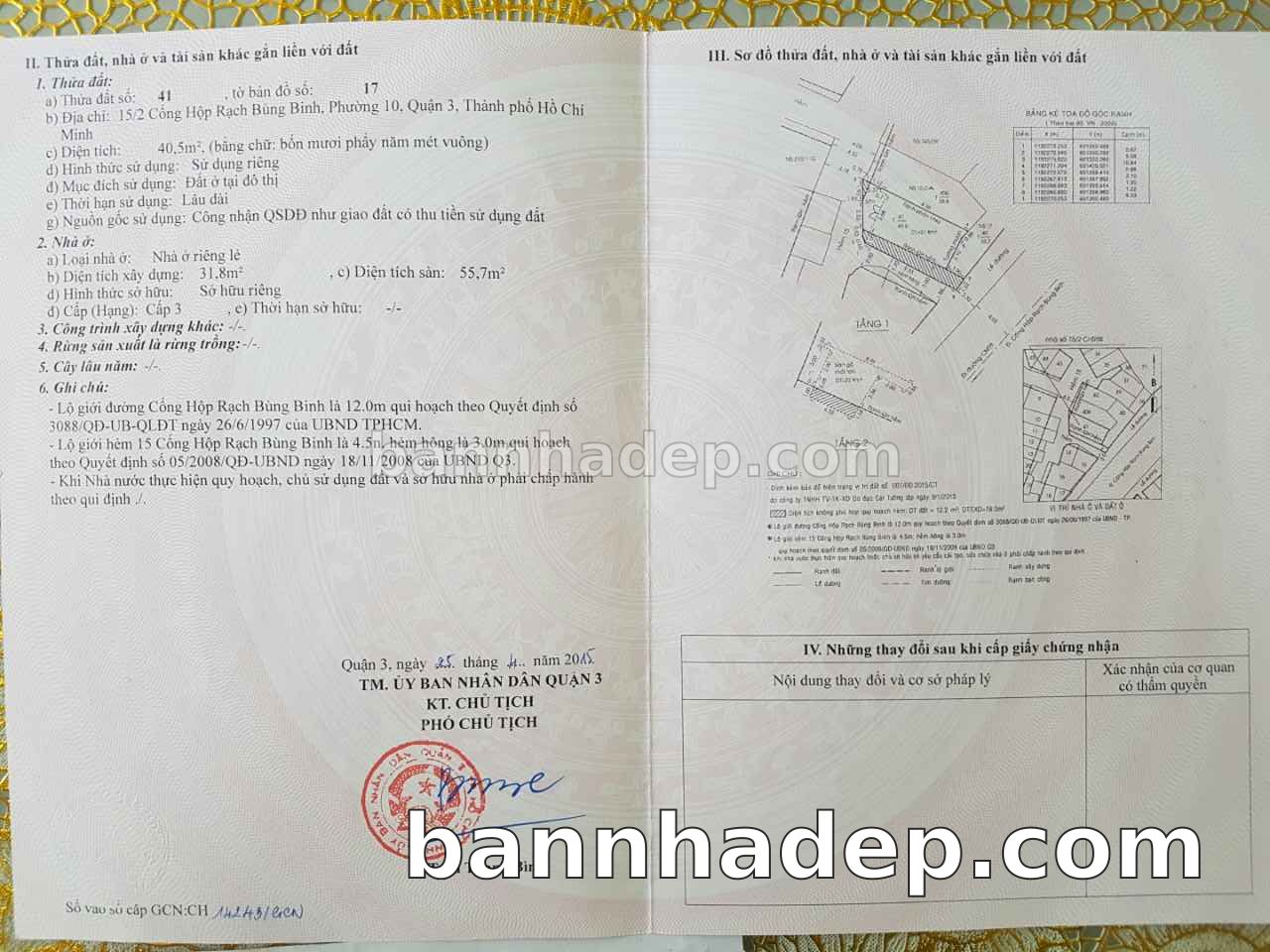 Bán nhà 15/2+15/2A Cống Hộp Rạch Bùng Binh phường 01 quận 3