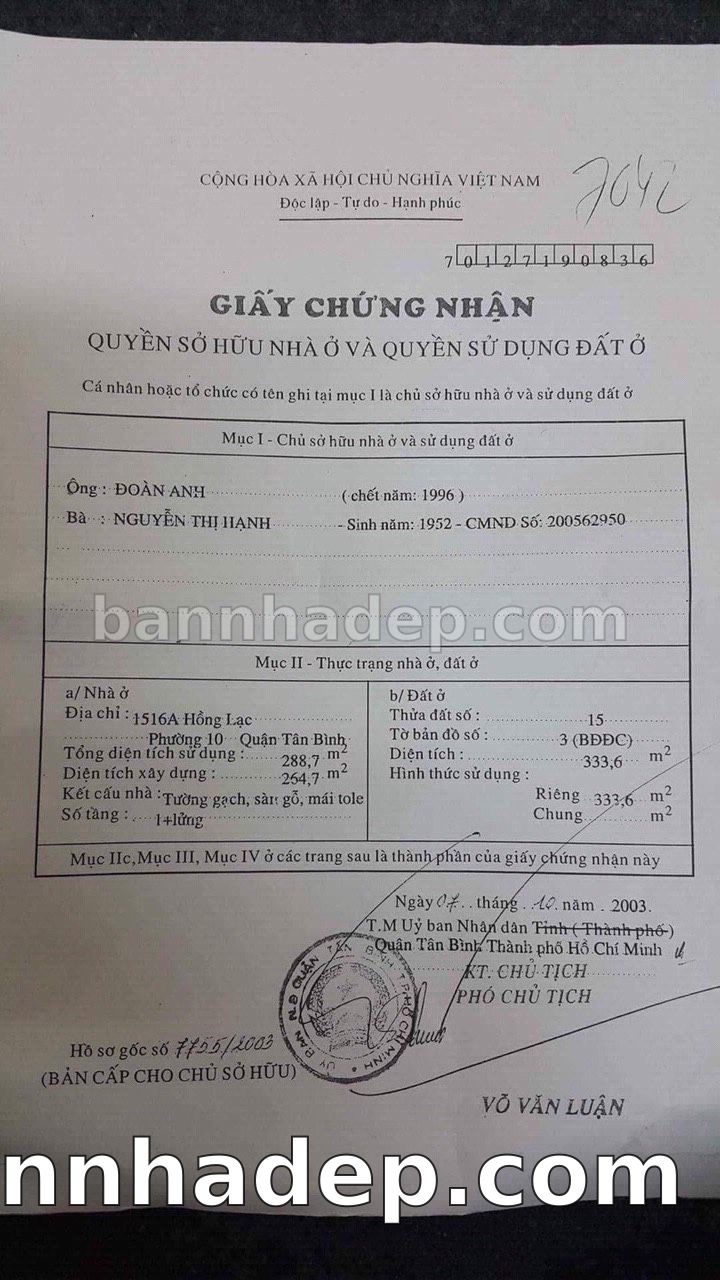 BÁN NHÀ Mặt tiền Số 1516A Hồng Lạc phường 01 quận Tân Bình TP. Hồ Chí Minh – GẦN CÔNG VIÊN GIẢI TRÍ – GIÁ TỐT Cần bán gấp nhà Mặt tiền tại Số 1516A Hồng Lạc phường 01 quận Tân Bình TP. Hồ Chí Minh – tiềm năng kinh doanh cao. Thông tin chi tiết: • Địa chỉ: Số 1516A Hồng Lạc phường 01 quận Tân Bình TP. Hồ Chí Minh • Diện tích: như trong sổ, không gian lý tưởng • Vị trí: Mặt tiền đường Hồng Lạc, gần trung tâm thương mại lớn, khu vực sầm uất, tiềm năng kinh doanh cao • Pháp lý: Sổ hồng riêng, không tranh chấp, sẵn sàng giao dịch • Giá bán: Thoả Thuận (còn thương lượng với khách thiện chí) Lợi thế đặc biệt: • Vị trí trung tâm Quận Tân Bình • Giao thông thuận tiện, kết nối các quận trung tâm • Phù hợp kinh doanh dài hạn, ổn định • Khu vực sầm uất, tiềm năng kinh doanh tốt