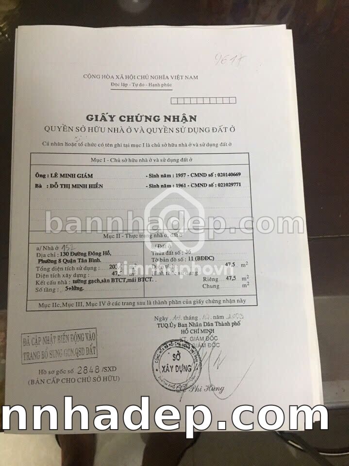 Bán nhà 152 Đông Hồ phường 8 quận Tân Bình