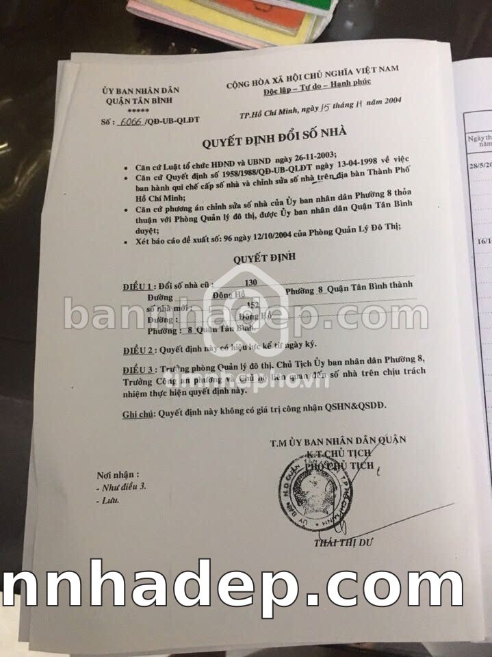BÁN NHÀ MẶT TIỀN Số 152 Đông Hồ Phường 8 Quận Tân Bình TP. Hồ Chí Minh – GẦN TRUNG TÂM THƯƠNG MẠI LỚN – GIÁ TỐT 13,5 TỶ Cần bán gấp nhà mặt tiền tại Số 152 Đông Hồ Phường 8 Quận Tân Bình TP. Hồ Chí Minh – tiềm năng kinh doanh cao. Thông tin chi tiết: • Địa chỉ: Số 152 Đông Hồ Phường 8 Quận Tân Bình TP. Hồ Chí Minh • Diện tích: 4.0m x 17.0m, không gian rộng rãi • Vị trí: Mặt tiền đường Đông Hồ, gần chợ, khu vực sầm uất, tiềm năng cao • Pháp lý: Sổ hồng riêng, quy hoạch rõ ràng, sẵn sàng sang tên • Giá bán: 13,5 Tỷ (giá tốt cho khách thiện chí) Lợi thế đặc biệt: • Khu vực sầm uất, tiềm năng kinh doanh tốt • Khu vực sầm uất, lưu lượng khách hàng lớn • Mặt tiền rộng, giá trị khai thác thương mại cao • Gần các tiện ích quan trọng: trung tâm thương mại, trường học, công viên
