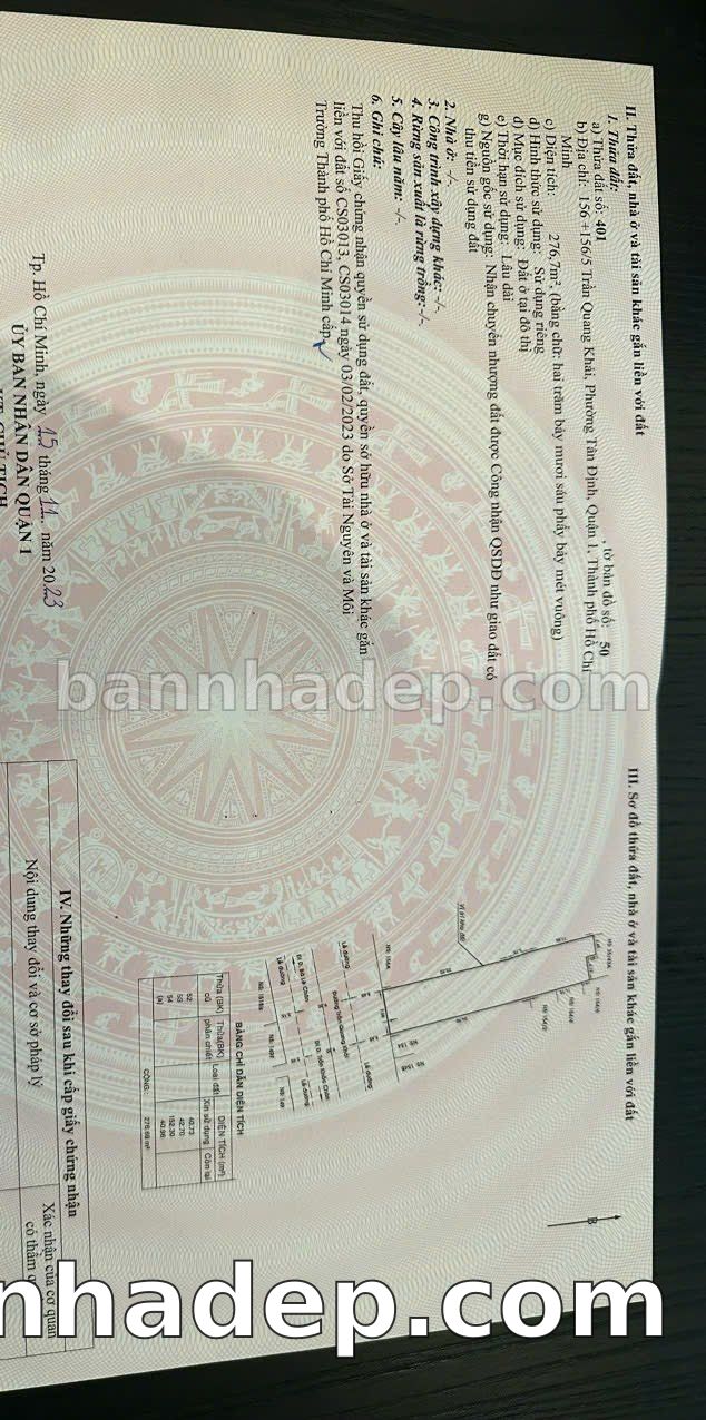 BÁN NHÀ MẶT TIỀN Số 156-156/5 Trần Quang Khải Phường Tân Định Quận 1 TP. Hồ Chí Minh – GẦN TRUNG TÂM THƯƠNG MẠI LỚN – GIÁ CỰC TỐT 130 TỶ Cần bán gấp nhà mặt tiền kinh doanh cực đẹp tại Số 156-156/5 Trần Quang Khải Phường Tân Định Quận 1 TP. Hồ Chí Minh. Thông tin chi tiết: • Địa chỉ: Số 156-156/5 Trần Quang Khải Phường Tân Định Quận 1 TP. Hồ Chí Minh • Diện tích: 7.5m x 33.0m, đất vuông vức • Vị trí: Mặt tiền đường Trần Quang Khải, gần trung tâm thương mại, khu vực đông dân cư, tiềm năng kinh doanh tốt • Pháp lý: Sổ hồng riêng, quy hoạch rõ ràng, sẵn sàng sang tên • Giá bán: 130 Tỷ (giá tốt, có thể thương lượng) Ưu thế cạnh tranh: • Khu vực sầm uất, tiềm năng kinh doanh tốt • Khu vực phát triển, tiềm năng tăng trưởng cao • Vị trí đắc địa, tiềm năng sinh lời cao • Khu vực sầm uất, lưu lượng khách hàng lớn