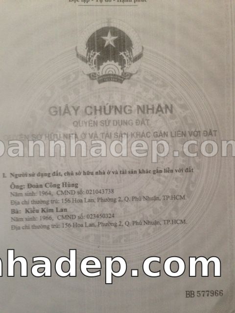 BÁN NHÀ Mặt tiền Số 156 Hoa Lan phường 02 quận Phú Nhuận TP. Hồ Chí Minh – GẦN CÔNG VIÊN GIẢI TRÍ – GIÁ TỐT Cần bán gấp nhà Mặt tiền tại Số 156 Hoa Lan phường 02 quận Phú Nhuận TP. Hồ Chí Minh – tiềm năng kinh doanh cao. Thông tin chi tiết: • Địa chỉ: Số 156 Hoa Lan phường 02 quận Phú Nhuận TP. Hồ Chí Minh • Diện tích: như trong sổ, không gian lý tưởng • Vị trí: Mặt tiền đường Hoa Lan, gần trung tâm thương mại lớn, khu vực sầm uất, tiềm năng kinh doanh cao • Pháp lý: Sổ hồng riêng, không tranh chấp, sẵn sàng giao dịch • Giá bán: Thoả Thuận (còn thương lượng với khách thiện chí) Lợi thế đặc biệt: • Vị trí trung tâm Quận Phú Nhuận • Giao thông thuận tiện, kết nối các quận trung tâm • Phù hợp kinh doanh dài hạn, ổn định • Khu vực sầm uất, tiềm năng kinh doanh tốt