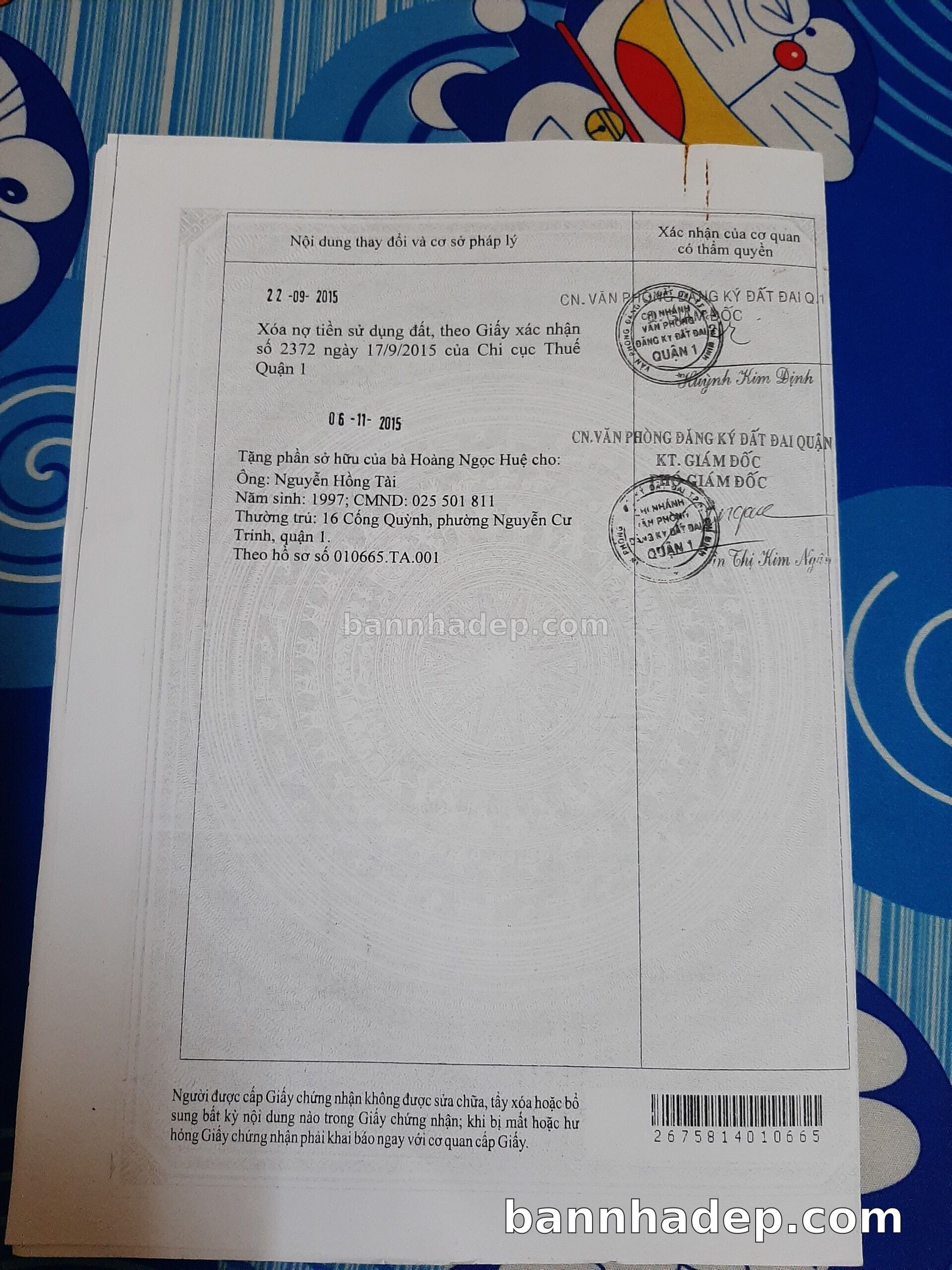 Bán nhà 18A1 Nguyễn Cảnh Chân phường Nguyễn Cư Trinh quận 1