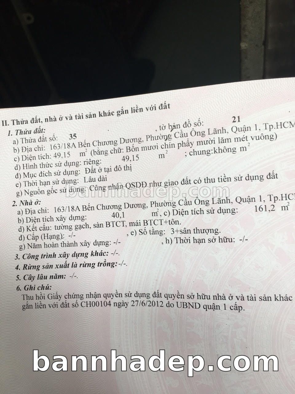 BÁN NHÀ Đường hẻm Số 163/18A Bến Chương Dương phường Cầu Ông Lãnh quận 1 TP. Hồ Chí Minh – GẦN CÔNG VIÊN GIẢI TRÍ – GIÁ TỐT Cần bán gấp nhà Đường hẻm tại Số 163/18A Bến Chương Dương phường Cầu Ông Lãnh quận 1 TP. Hồ Chí Minh – tiềm năng kinh doanh cao. Thông tin chi tiết: • Địa chỉ: Số 163/18A Bến Chương Dương phường Cầu Ông Lãnh quận 1 TP. Hồ Chí Minh • Diện tích: như trong sổ, không gian lý tưởng • Vị trí: Đường hẻm đường Bến Chương Dương, gần trung tâm thương mại lớn, khu vực sầm uất, tiềm năng kinh doanh cao • Pháp lý: Sổ hồng riêng, không tranh chấp, sẵn sàng giao dịch • Giá bán: Thoả Thuận (còn thương lượng với khách thiện chí) Lợi thế đặc biệt: • Vị trí trung tâm Quận 1 • Giao thông thuận tiện, kết nối các quận trung tâm • Phù hợp kinh doanh dài hạn, ổn định • Khu vực sầm uất, tiềm năng kinh doanh tốt