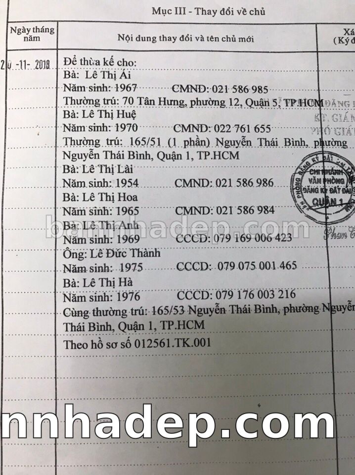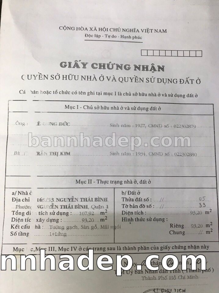 Bán nhà 165/53 Nguyễn Thái Bình phường Nguyễn Thái Bình quận 1