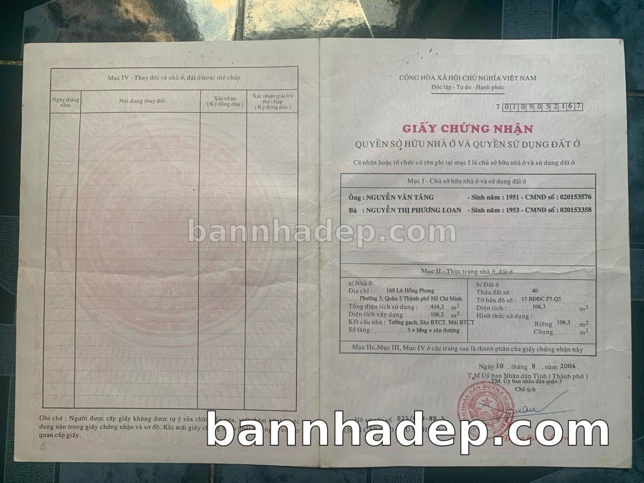 BÁN NHÀ MẶT TIỀN Số 168 Lê Hồng Phong Phường 3 Quận 5 TP. Hồ Chí Minh – GẦN BỆNH VIỆN QUỐC TẾ – GIÁ TỐT 42 TỶ Cần bán nhà mặt tiền tại Số 168 Lê Hồng Phong Phường 3 Quận 5 TP. Hồ Chí Minh. Thông tin chi tiết: • Địa chỉ: Số 168 Lê Hồng Phong Phường 3 Quận 5 TP. Hồ Chí Minh • Diện tích: 4.7m x 22.9m, đất vuông vức • Vị trí: Mặt tiền đường Lê Hồng Phong, đối diện trường học, khu vực sầm uất, đông đúc • Pháp lý: Sổ hồng riêng, thổ cư 100%, sẵn sàng sang tên • Giá bán: 42 Tỷ (có thể thương lượng) Điểm nổi bật: • Phù hợp kinh doanh đa dạng ngành nghề • Giao thông thuận tiện, kết nối các quận trung tâm • Vị trí đắc địa, tiềm năng sinh lời cao • Khu vực phát triển, tiềm năng tăng trưởng cao