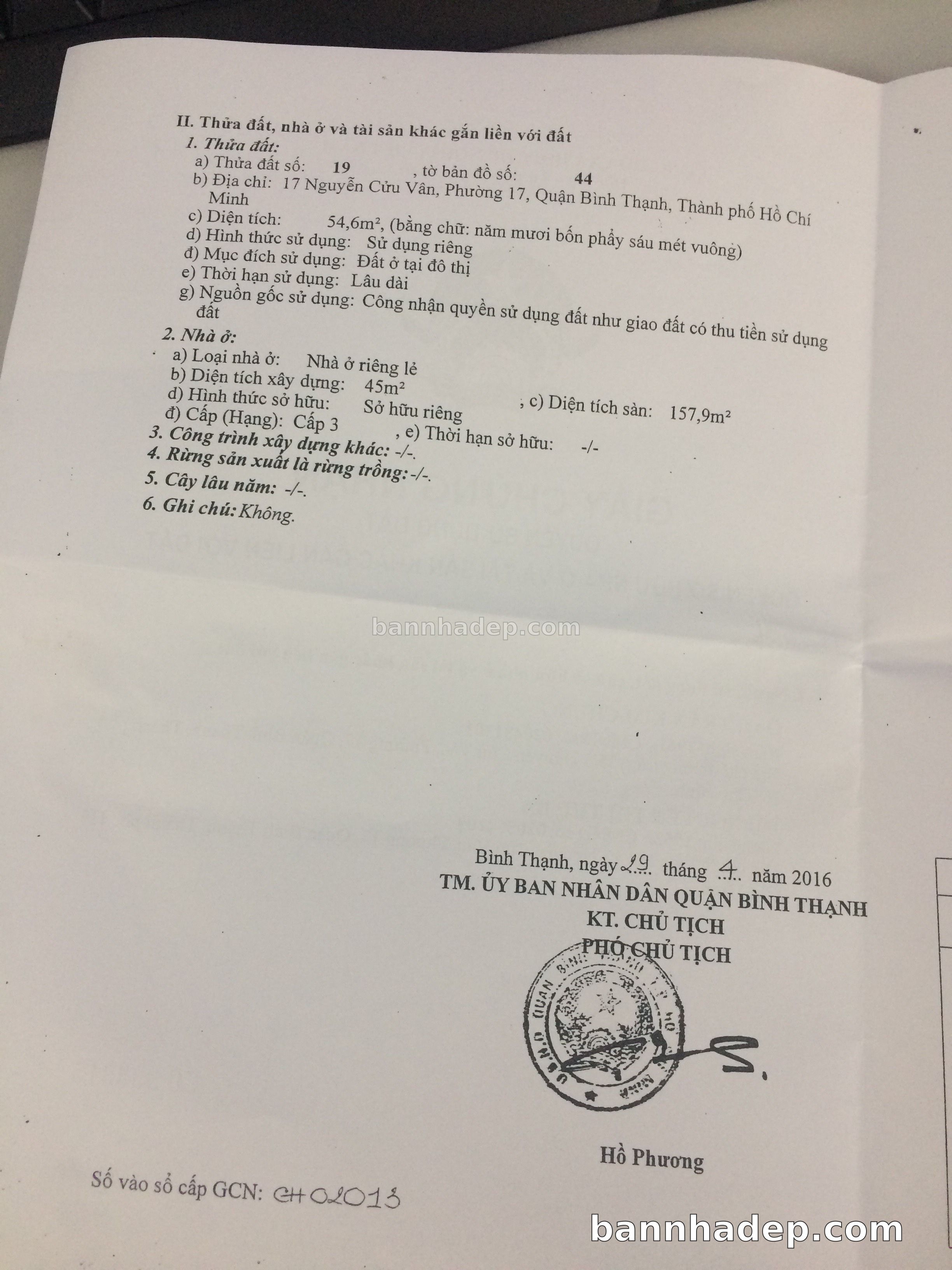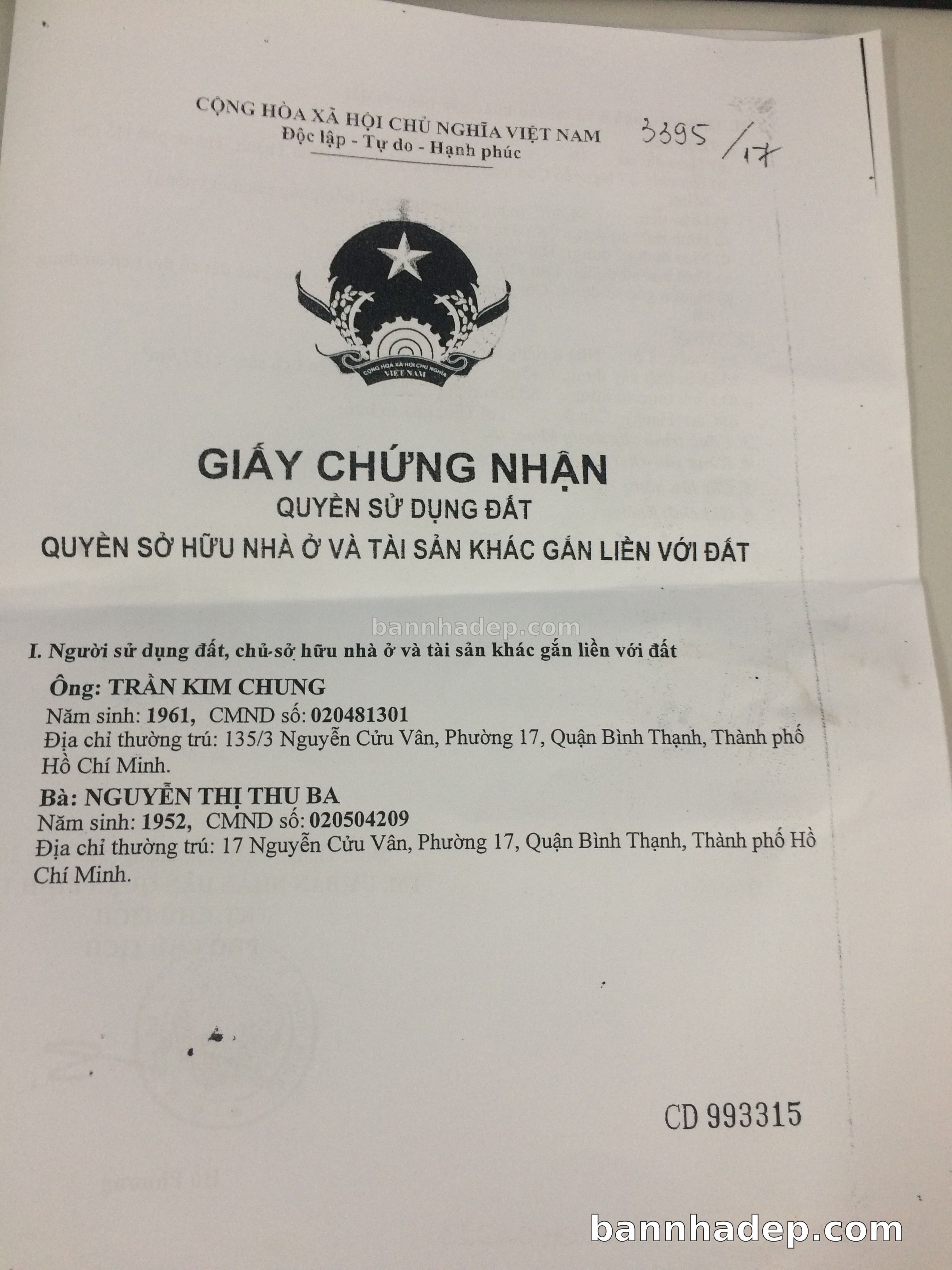 Bán nhà 17 Nguyễn Cửu Vân phường 01 quận Bình Thạnh