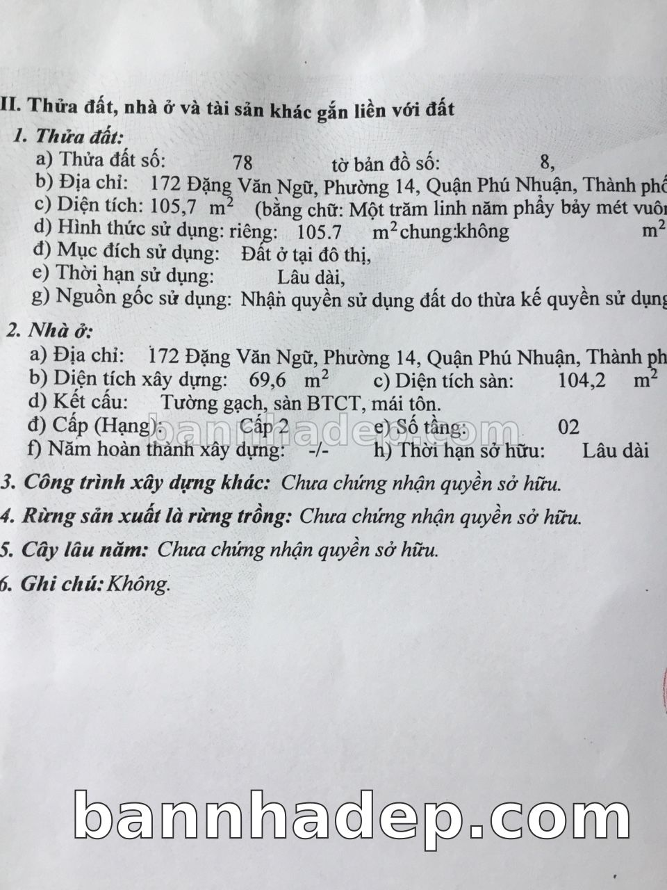BÁN NHÀ Mặt tiền Số 172 Đặng Văn Ngữ phường 01 quận Phú Nhuận TP. Hồ Chí Minh – GẦN CÔNG VIÊN GIẢI TRÍ – GIÁ TỐT Cần bán gấp nhà Mặt tiền tại Số 172 Đặng Văn Ngữ phường 01 quận Phú Nhuận TP. Hồ Chí Minh – tiềm năng kinh doanh cao. Thông tin chi tiết: • Địa chỉ: Số 172 Đặng Văn Ngữ phường 01 quận Phú Nhuận TP. Hồ Chí Minh • Diện tích: như trong sổ, không gian lý tưởng • Vị trí: Mặt tiền đường Đặng Văn Ngữ, gần trung tâm thương mại lớn, khu vực sầm uất, tiềm năng kinh doanh cao • Pháp lý: Sổ hồng riêng, không tranh chấp, sẵn sàng giao dịch • Giá bán: Thoả Thuận (còn thương lượng với khách thiện chí) Lợi thế đặc biệt: • Vị trí trung tâm Quận Phú Nhuận • Giao thông thuận tiện, kết nối các quận trung tâm • Phù hợp kinh doanh dài hạn, ổn định • Khu vực sầm uất, tiềm năng kinh doanh tốt