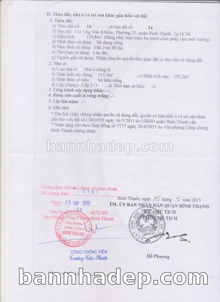 Bán nhà 174-176 Ung Văn Khiêm phường 02 quận Bình Thạnh