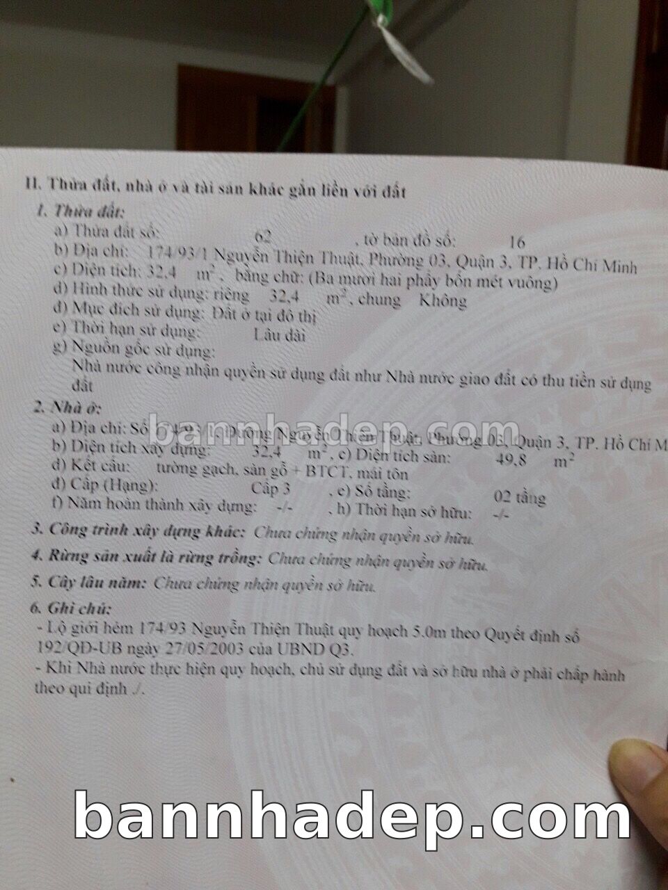 Bán nhà 174/93/1 Nguyễn Thiện Thuật phường 03 quận 3