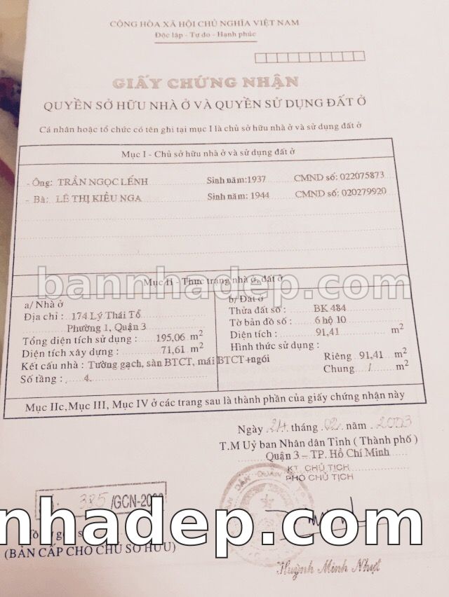 Bán nhà 174 Lý Thái Tổ phường 01 quận 3