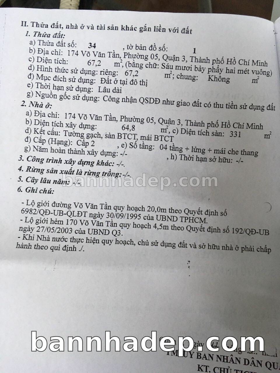 Bán nhà 174 Võ Văn Tần phường 05 quận 3