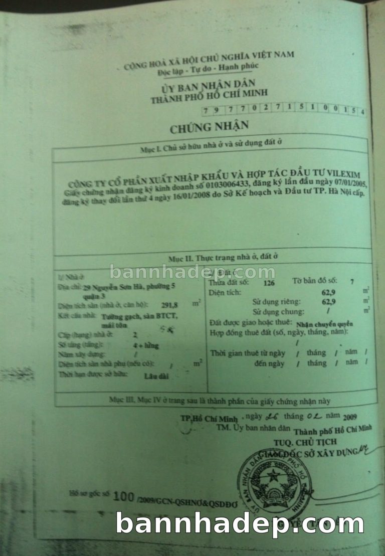 Bán nhà 29 Nguyễn Sơn Hà phường 05 quận 3