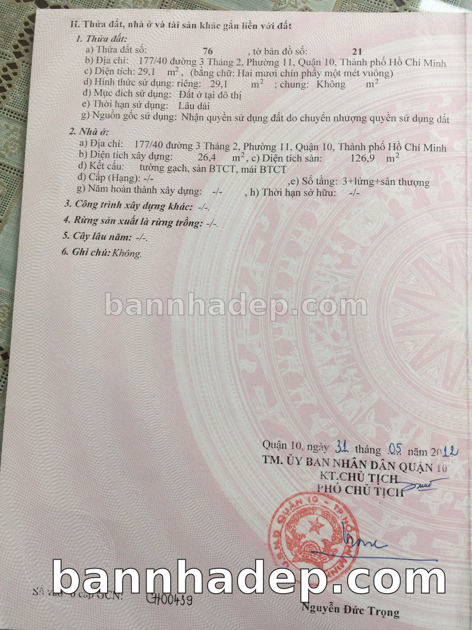 Bán nhà 177/40 Đường 3 Tháng 2 phường 01 quận 10