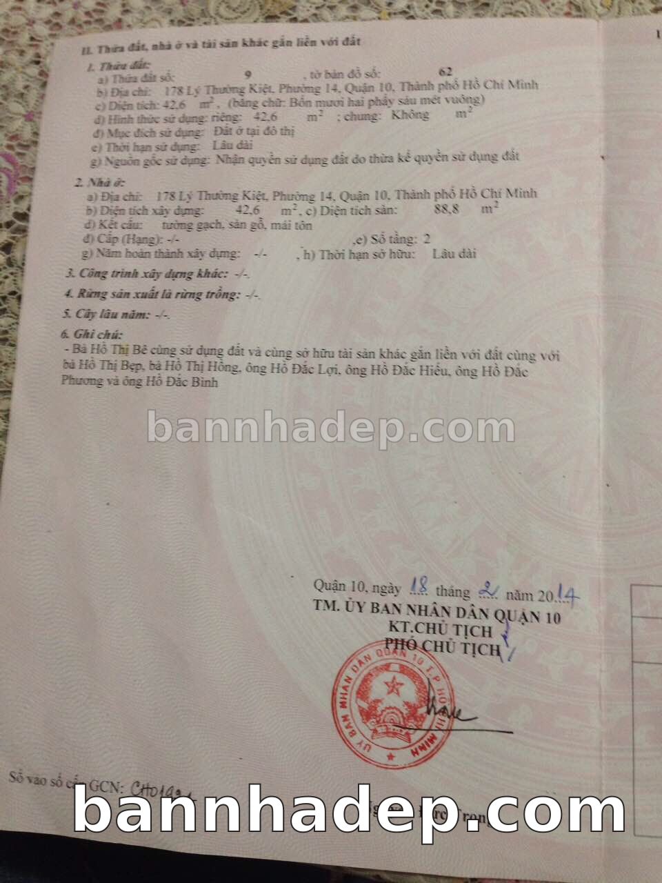 Bán nhà 178 Lý Thường Kiệt phường 01 quận 10