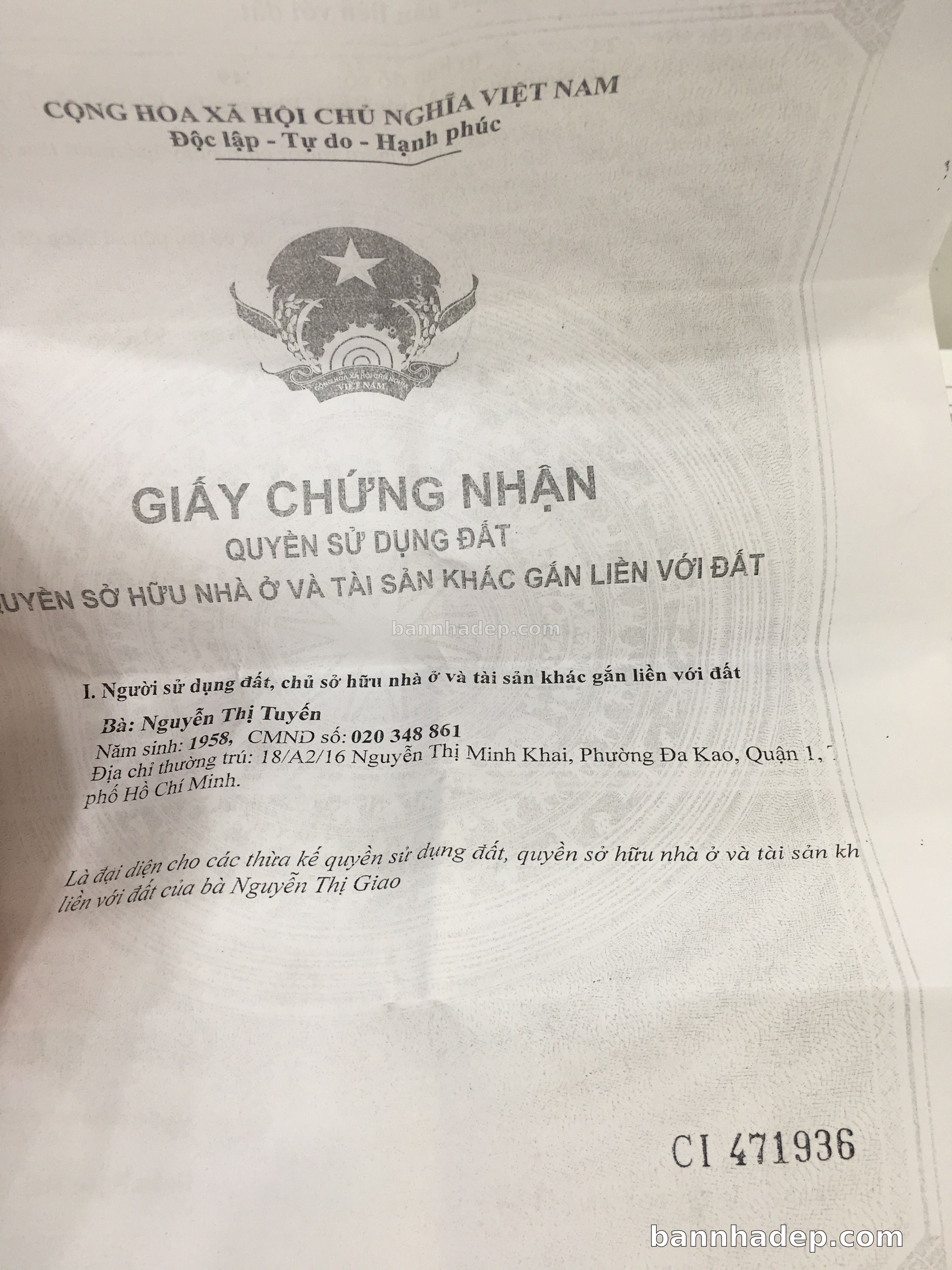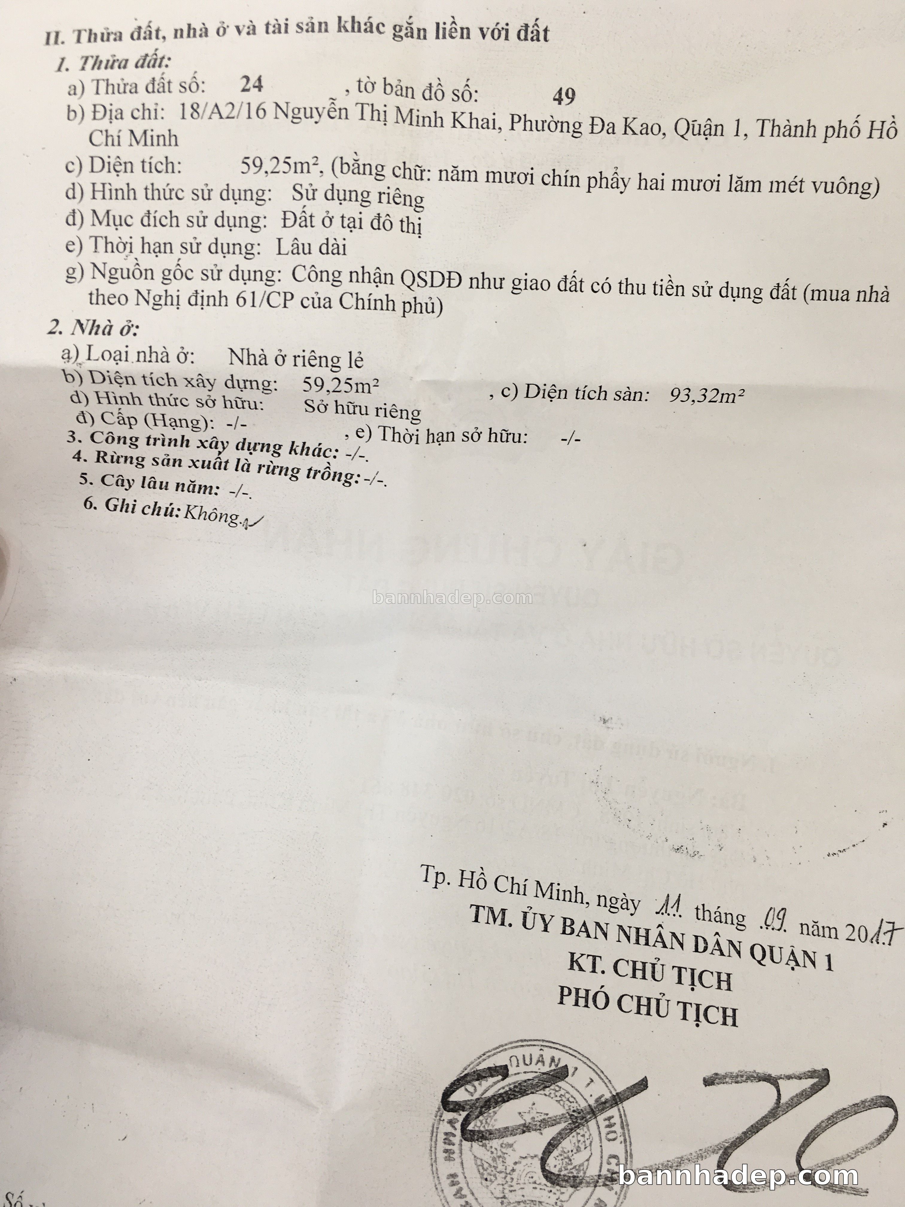 Bán nhà 18/A2/16 Nguyễn Thị Minh Khai phường Đa Kao quận 1