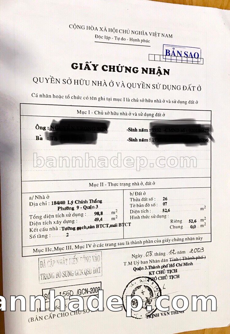 Bán nhà 90 Bà Huyện Thanh Quan phường 09 quận 3