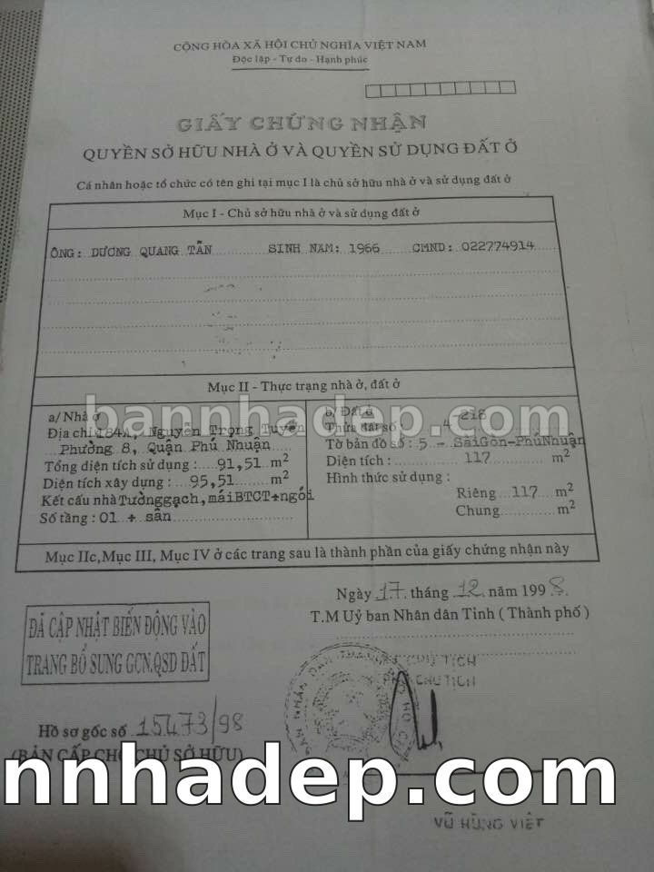 BÁN NHÀ MẶT TIỀN Số 184A Nguyễn Trọng Tuyển Phường 8 Quận Phú Nhuận TP. Hồ Chí Minh – GẦN TRUNG TÂM THƯƠNG MẠI LỚN – GIÁ TỐT 29 TỶ Bán nhà mặt tiền tại Số 184A Nguyễn Trọng Tuyển Phường 8 Quận Phú Nhuận TP. Hồ Chí Minh. Thông tin chi tiết: • Địa chỉ: Số 184A Nguyễn Trọng Tuyển Phường 8 Quận Phú Nhuận TP. Hồ Chí Minh • Diện tích: 25.0m x 5.5m, đất vuông vức • Vị trí: Mặt tiền đường Nguyễn Trọng Tuyển, gần công viên giải trí, khu vực sầm uất, tiềm năng cao • Pháp lý: Sổ hồng riêng, sẵn sàng sang tên • Giá bán: 29 Tỷ (giá tốt nhất khu vực, có thể thương lượng) Ưu thế cạnh tranh: • Khu vực sầm uất, lưu lượng khách hàng lớn • Vị trí đắc địa, tiềm năng sinh lời cao • Phù hợp kinh doanh dài hạn, ổn định • Gần các tiện ích quan trọng: chợ, siêu thị, trường học quốc tế