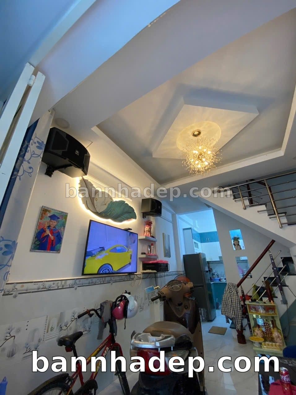 Nhà mới vô ở ngay , 1 trệt 2 lẩu, Gần chợ và khu dân cư đông đúc Chủ tặng 3 máy lạnh 1 tivi và toàn bộ nội thất trong nhà Sổ Hồng chung Hướng Bắc