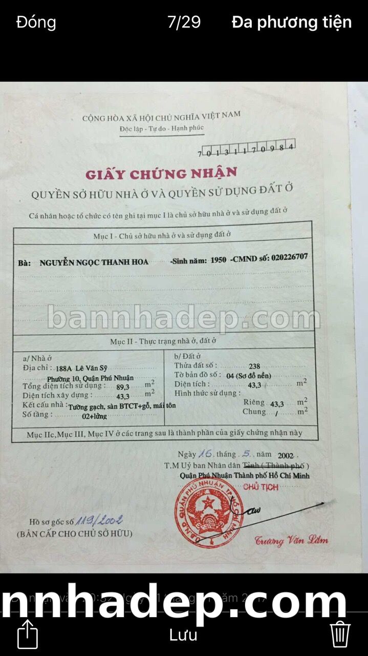 Bán nhà 150 tờ bản đồ số 1 phường 01 quận Phú Nhuận