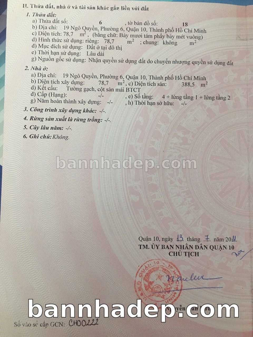 BÁN NHÀ Mặt tiền Số 19 Ngô Quyền phường 06 quận 10 TP. Hồ Chí Minh – GẦN CÔNG VIÊN GIẢI TRÍ – GIÁ TỐT Cần bán gấp nhà Mặt tiền tại Số 19 Ngô Quyền phường 06 quận 10 TP. Hồ Chí Minh – tiềm năng kinh doanh cao. Thông tin chi tiết: • Địa chỉ: Số 19 Ngô Quyền phường 06 quận 10 TP. Hồ Chí Minh • Diện tích: như trong sổ, không gian lý tưởng • Vị trí: Mặt tiền đường Ngô Quyền, gần trung tâm thương mại lớn, khu vực sầm uất, tiềm năng kinh doanh cao • Pháp lý: Sổ hồng riêng, không tranh chấp, sẵn sàng giao dịch • Giá bán: Thoả Thuận (còn thương lượng với khách thiện chí) Lợi thế đặc biệt: • Vị trí trung tâm Quận 10 • Giao thông thuận tiện, kết nối các quận trung tâm • Phù hợp kinh doanh dài hạn, ổn định • Khu vực sầm uất, tiềm năng kinh doanh tốt