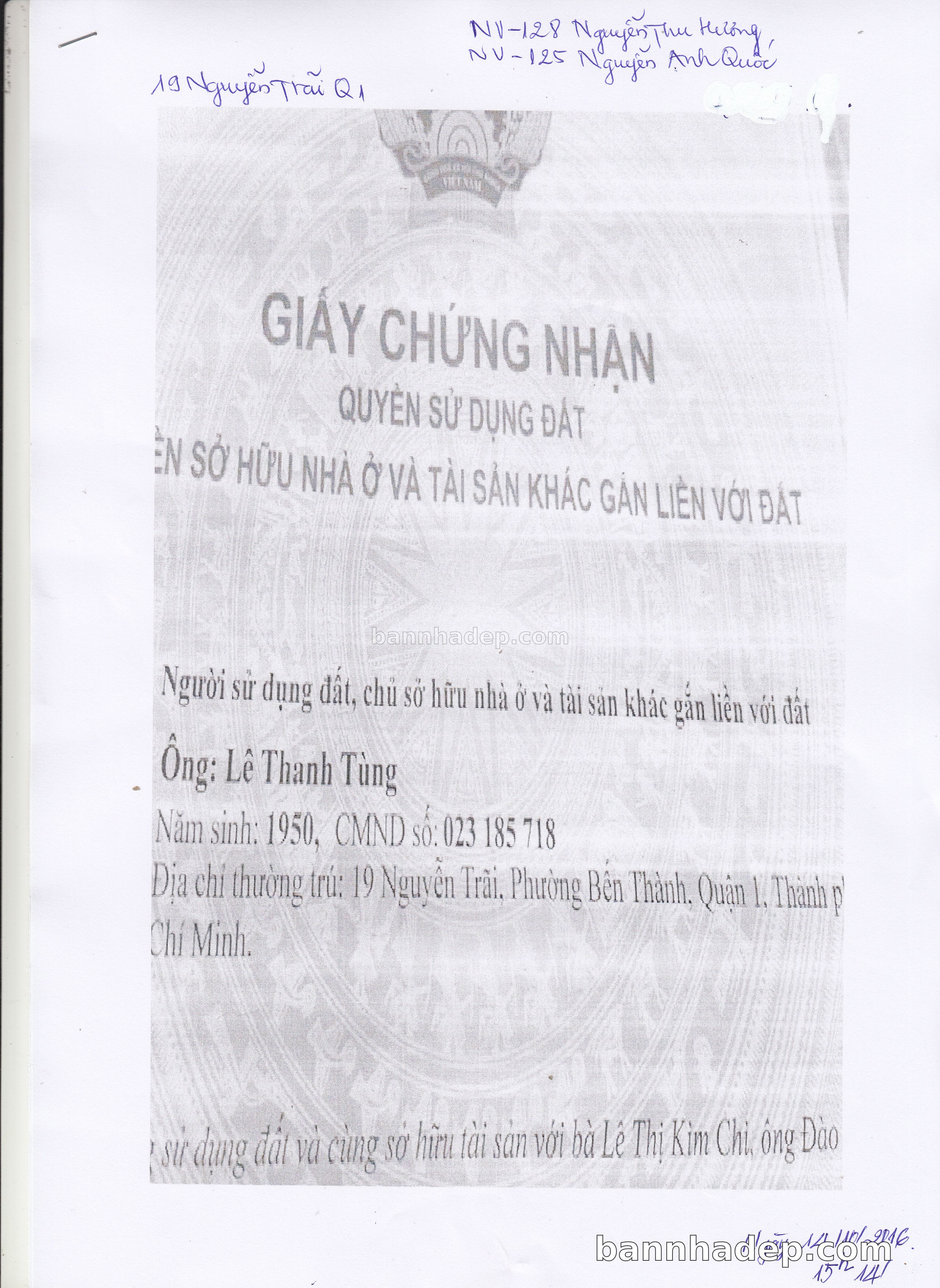 Bán nhà 19 Nguyễn Trãi phường Bến Thành quận 1