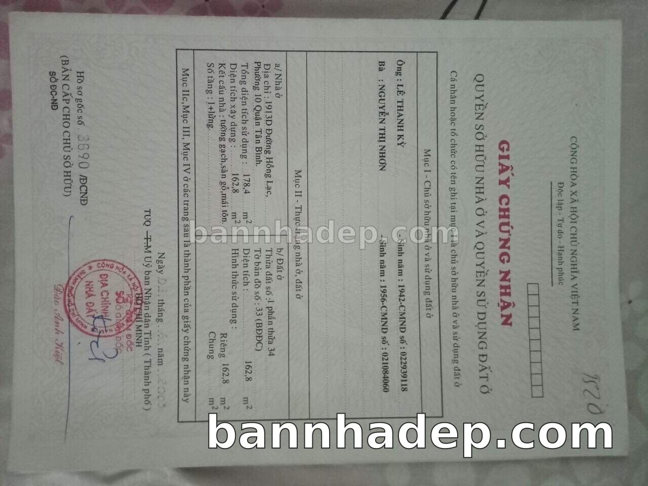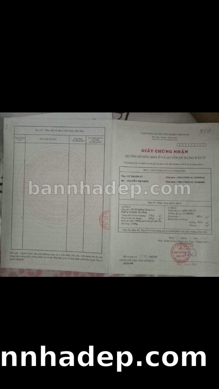 Bán nhà 1913D Hồng Lạc phường 01 quận Tân Bình