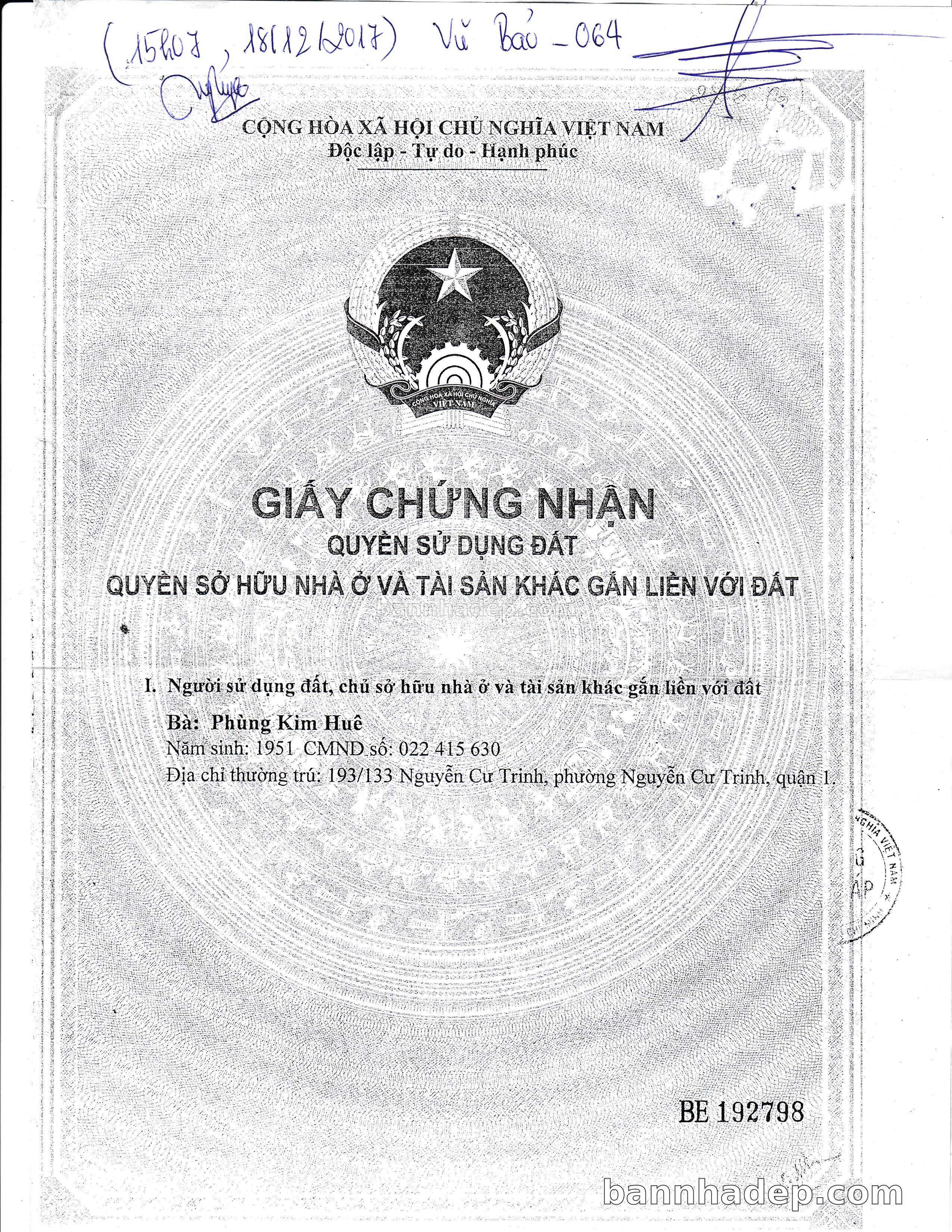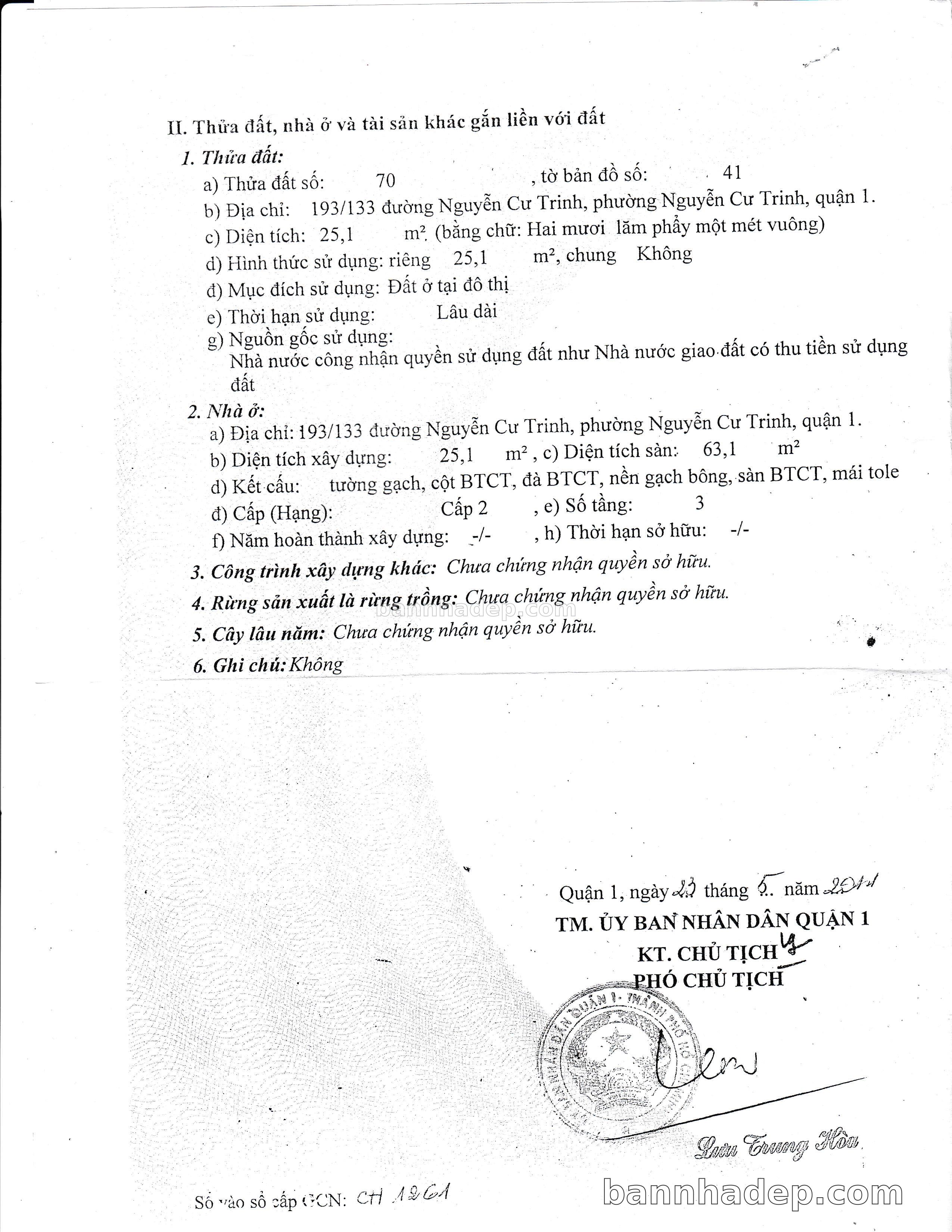 Bán nhà 193/133 Nguyễn Cư Trinh phường Nguyễn Cư Trinh quận 1