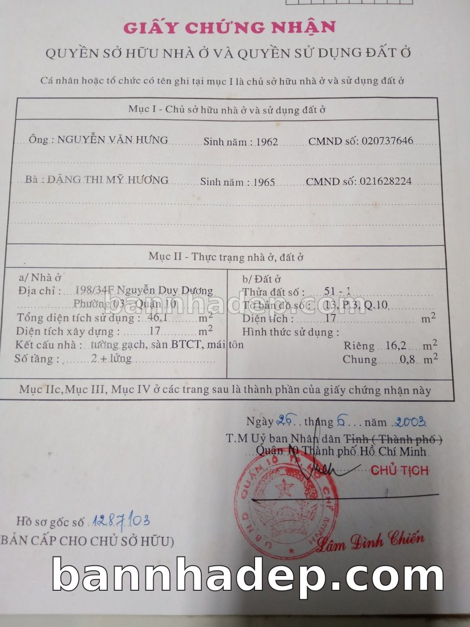 Bán nhà 198/34F Nguyễn Duy Dương phường 03 quận 10