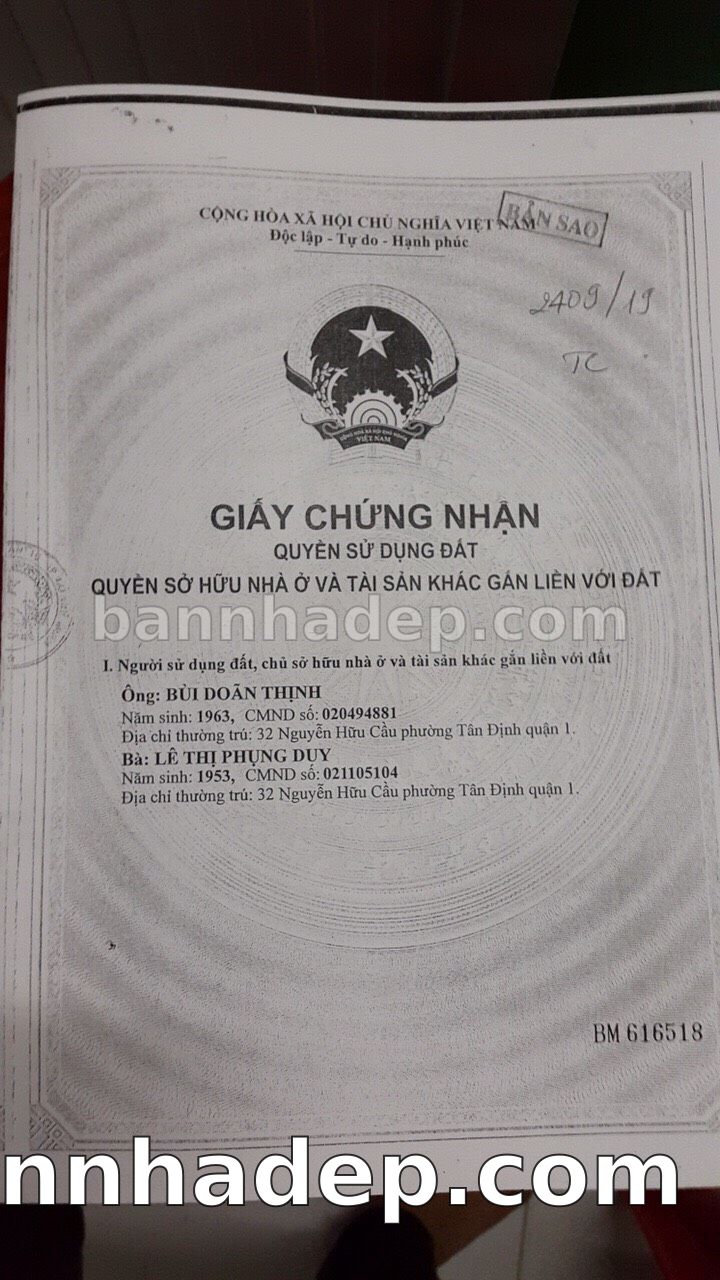 Bán nhà Thửa đất số 250, Tờ bản đồ 37 Nguyễn Ngọc Phương phường 01 quận Bình Thạnh