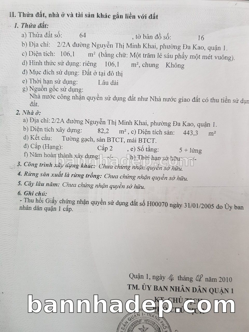 Bán nhà 2/2A Nguyễn Thị Minh Khai phường Đa Kao quận 1