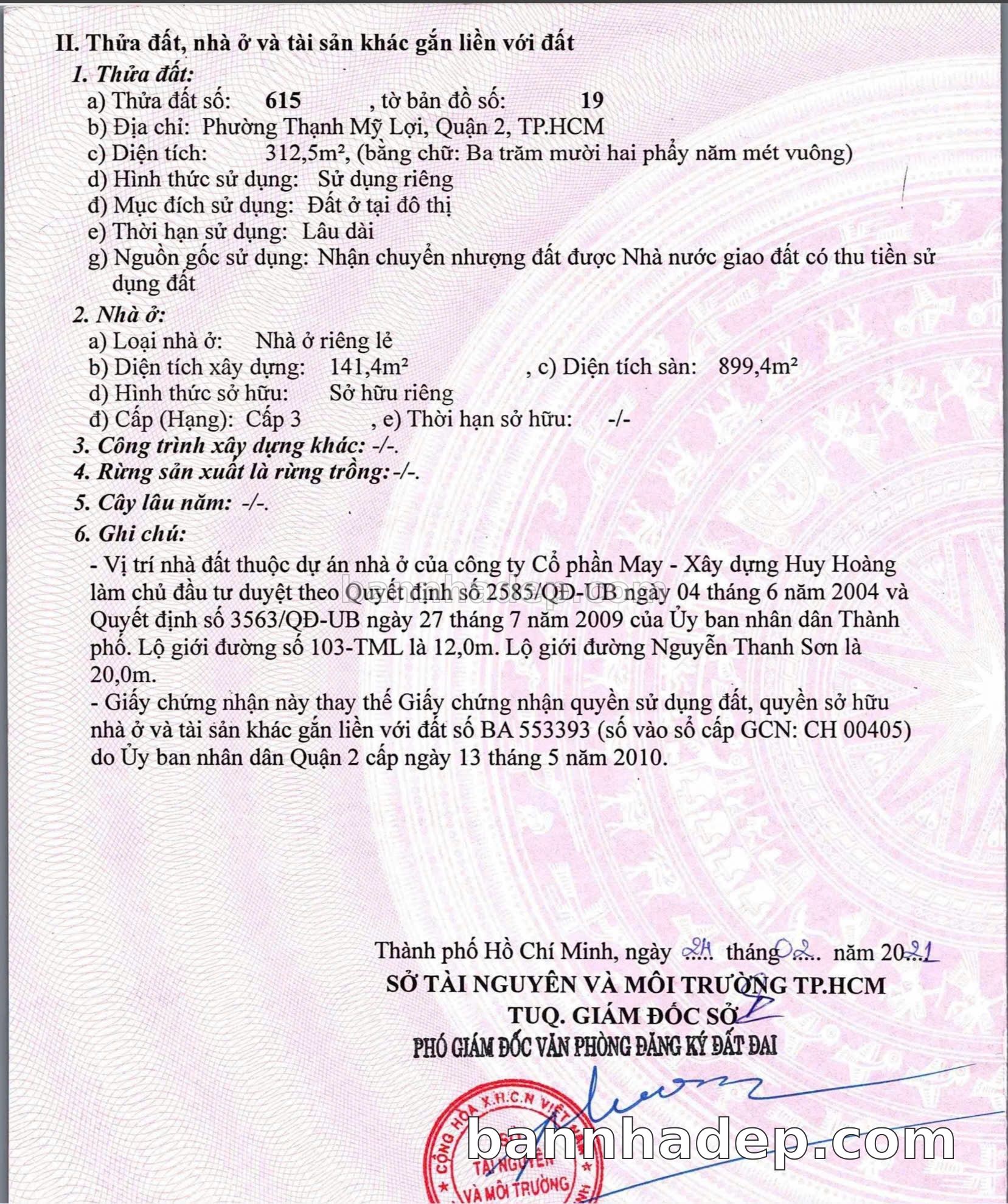 Bán nhà Thửa: 826Tờ: 19 Số 58 Thạnh Mỹ Lợi Thành phố Thủ Đức