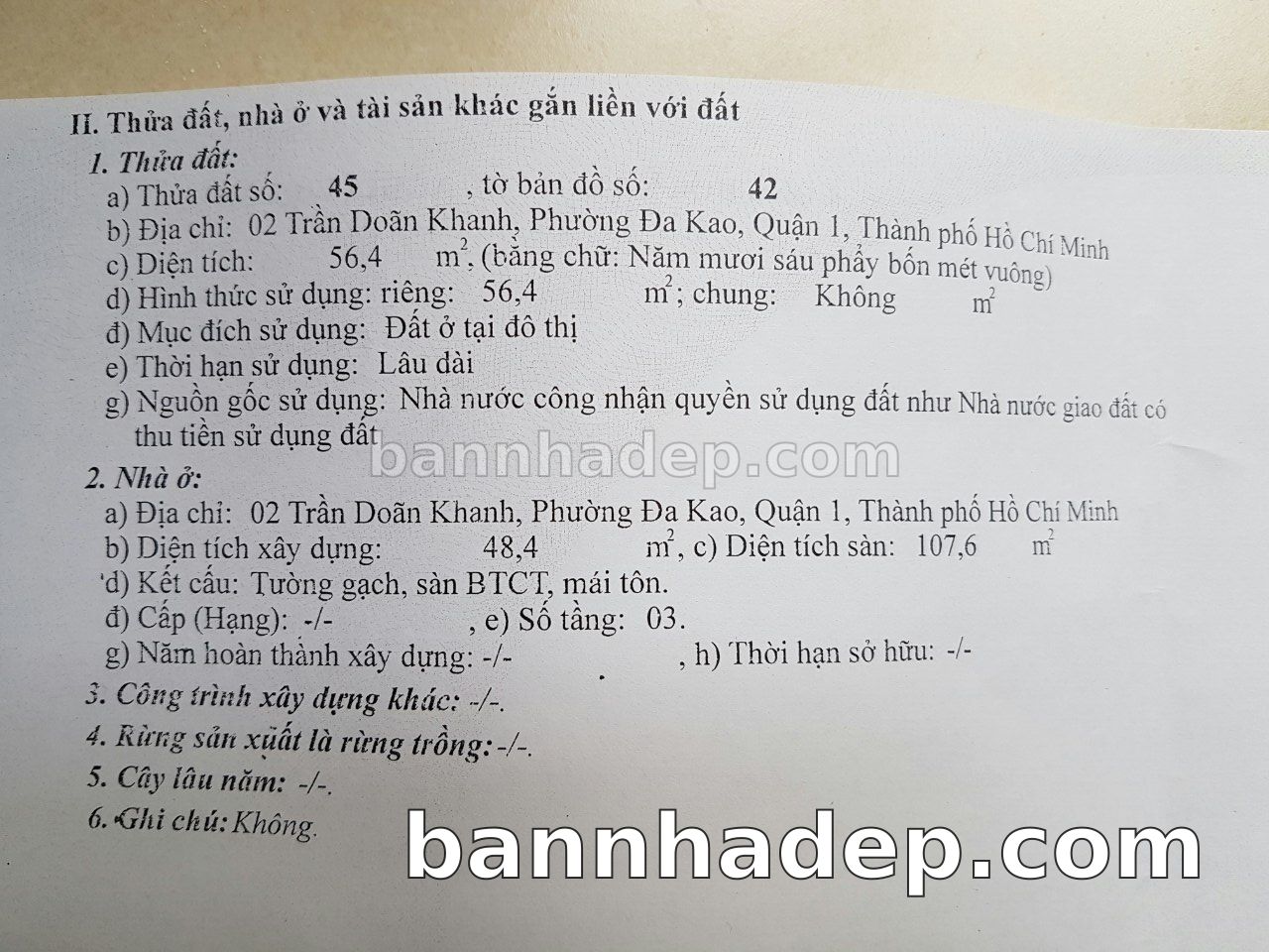 Bán nhà 2 Trần Doãn Khanh phường Đa Kao quận 1