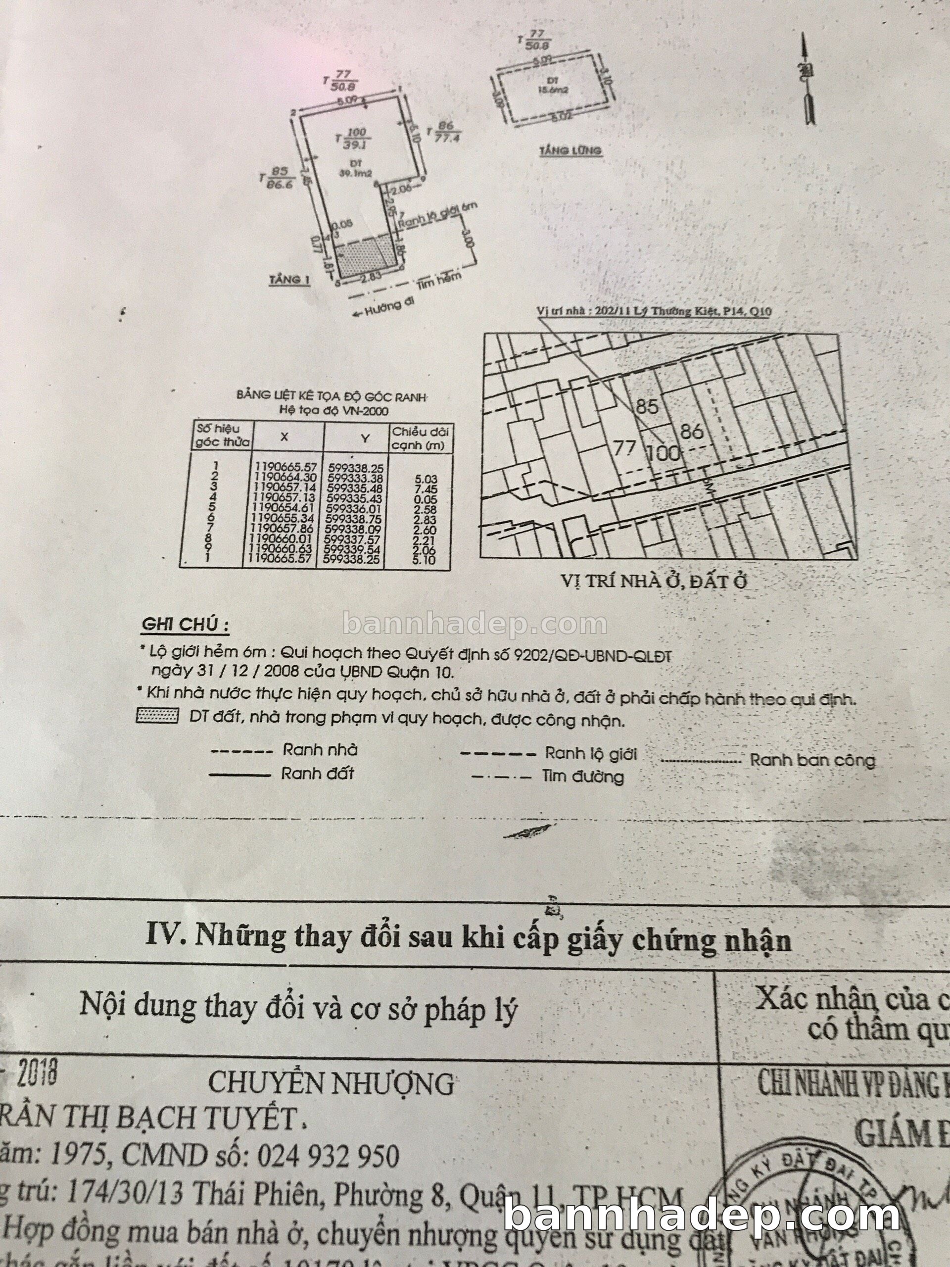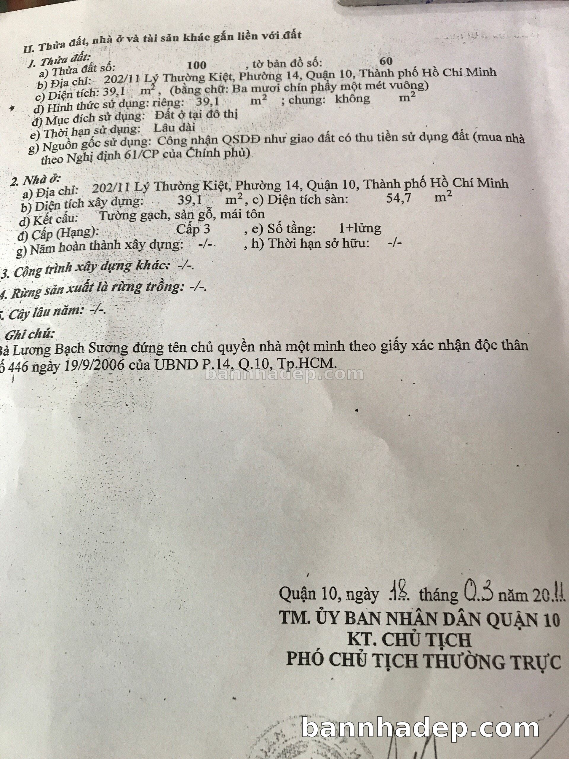 Bán nhà 202/11 Lý Thường Kiệt phường 01 quận 10