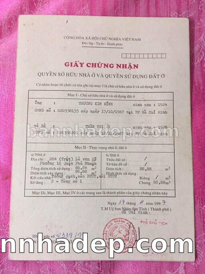 Bán nhà 150 tờ bản đồ số 1 phường 01 quận Phú Nhuận