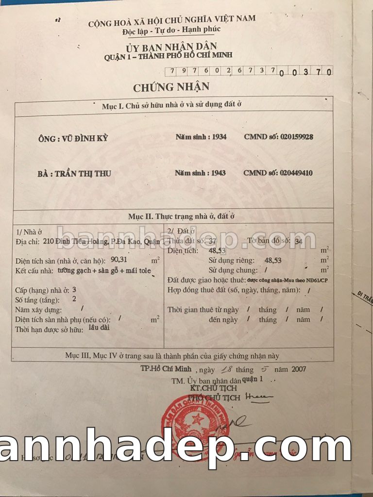 Bán nhà 210 Đinh Tiên Hoàng phường Đa Kao quận 1