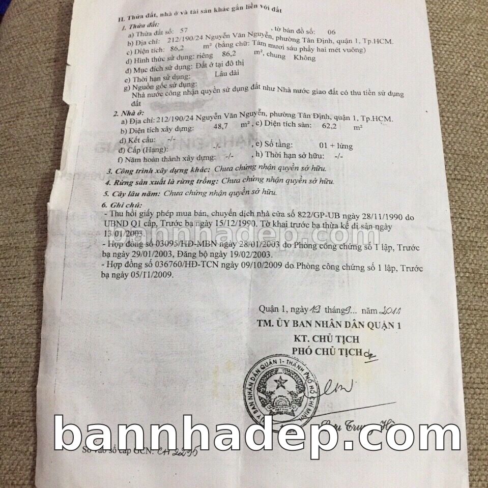 BÁN NHÀ Đường hẻm Số 212/190/24 Nguyễn Văn Nguyễn phường Tân Định quận 1 TP. Hồ Chí Minh – GẦN CÔNG VIÊN GIẢI TRÍ – GIÁ TỐT Cần bán gấp nhà Đường hẻm tại Số 212/190/24 Nguyễn Văn Nguyễn phường Tân Định quận 1 TP. Hồ Chí Minh – tiềm năng kinh doanh cao. Thông tin chi tiết: • Địa chỉ: Số 212/190/24 Nguyễn Văn Nguyễn phường Tân Định quận 1 TP. Hồ Chí Minh • Diện tích: như trong sổ, không gian lý tưởng • Vị trí: Đường hẻm đường Nguyễn Văn Nguyễn, gần trung tâm thương mại lớn, khu vực sầm uất, tiềm năng kinh doanh cao • Pháp lý: Sổ hồng riêng, không tranh chấp, sẵn sàng giao dịch • Giá bán: Thoả Thuận (còn thương lượng với khách thiện chí) Lợi thế đặc biệt: • Vị trí trung tâm Quận 1 • Giao thông thuận tiện, kết nối các quận trung tâm • Phù hợp kinh doanh dài hạn, ổn định • Khu vực sầm uất, tiềm năng kinh doanh tốt
